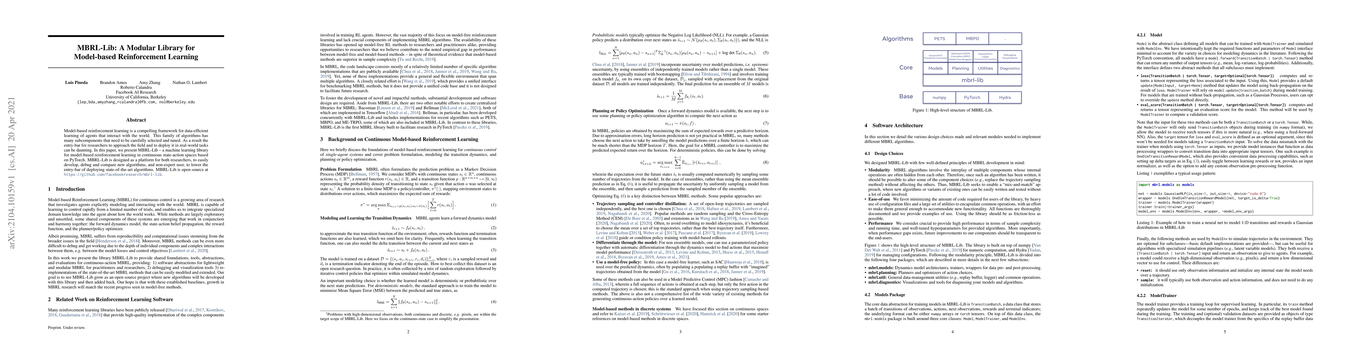 Researchers created MBRL-Lib, an open-source library for model-based reinforcement learning that simplifies algorithm development and deployment, making it more accessible to non-experts.