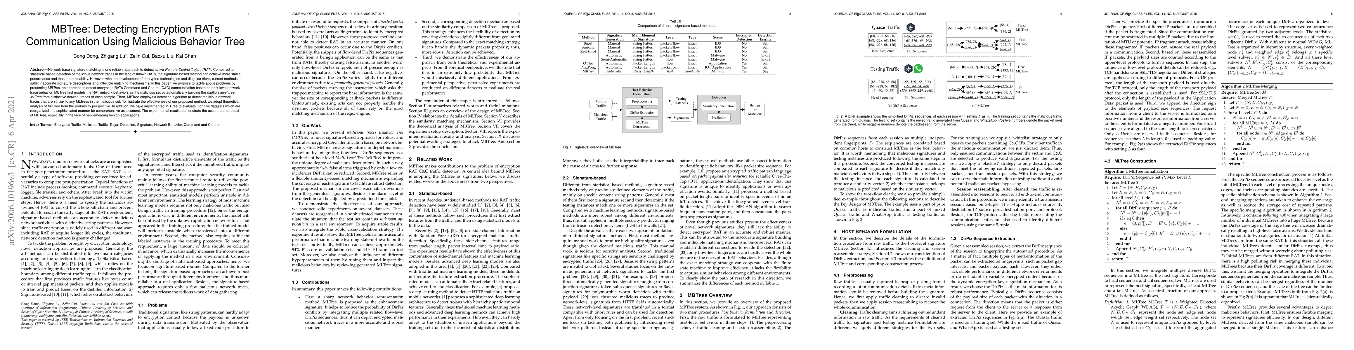 This paper proposes MBTree, a method to detect encryption RATs by analyzing network trace behavior, achieving stable performance and reliability in the face of emerging disguise tricks.
