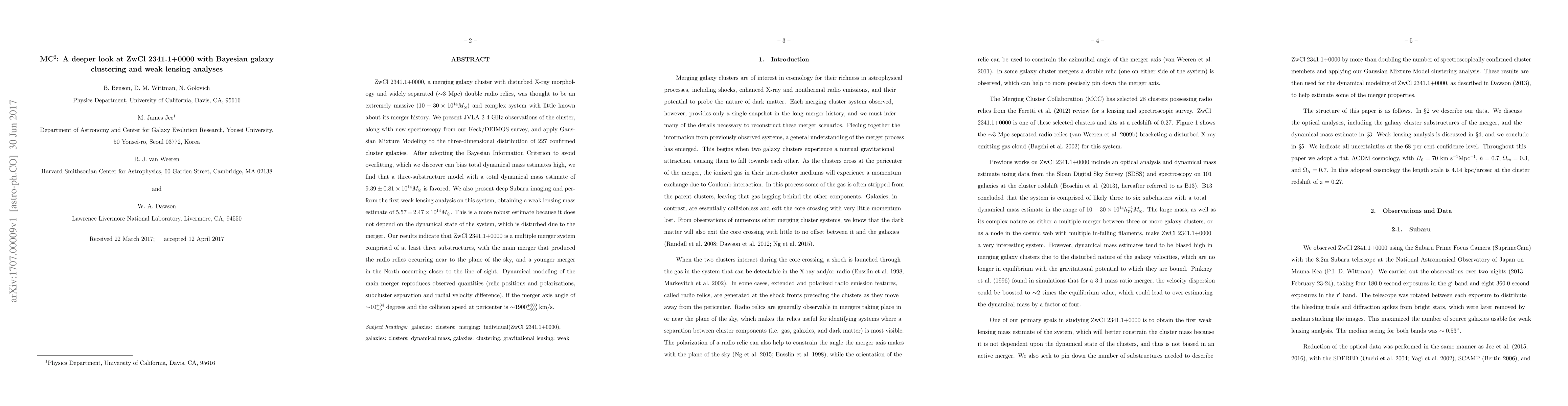Astronomers analyzed a merging galaxy cluster ZwCl 2341.1+0000 using new data to find that it is made up of at least three substructures with distinct merger histories, providing new insights into the system's complex structure and dynamics.
