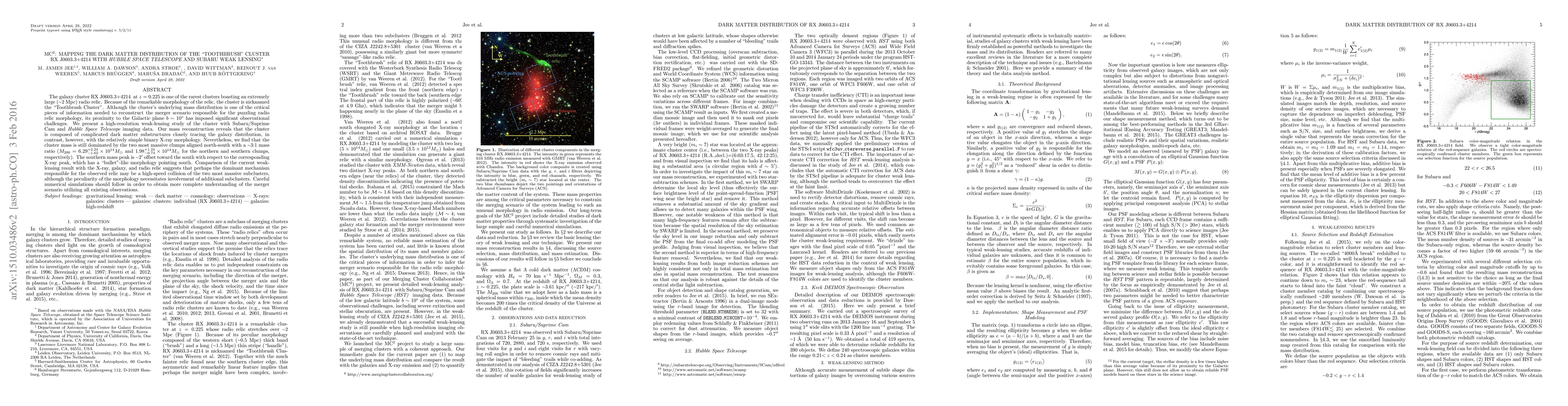 The study uses weak-lensing with Subaru and Hubble data to map the dark matter distribution of the 'Toothbrush' cluster RX J0603.3+4214. It reveals complex substructures in the dark matter, dominated by two massive clumps with a north-south alignment, suggesting a high-speed collision between subclusters as the origin of the cluster's unique radio-relic.