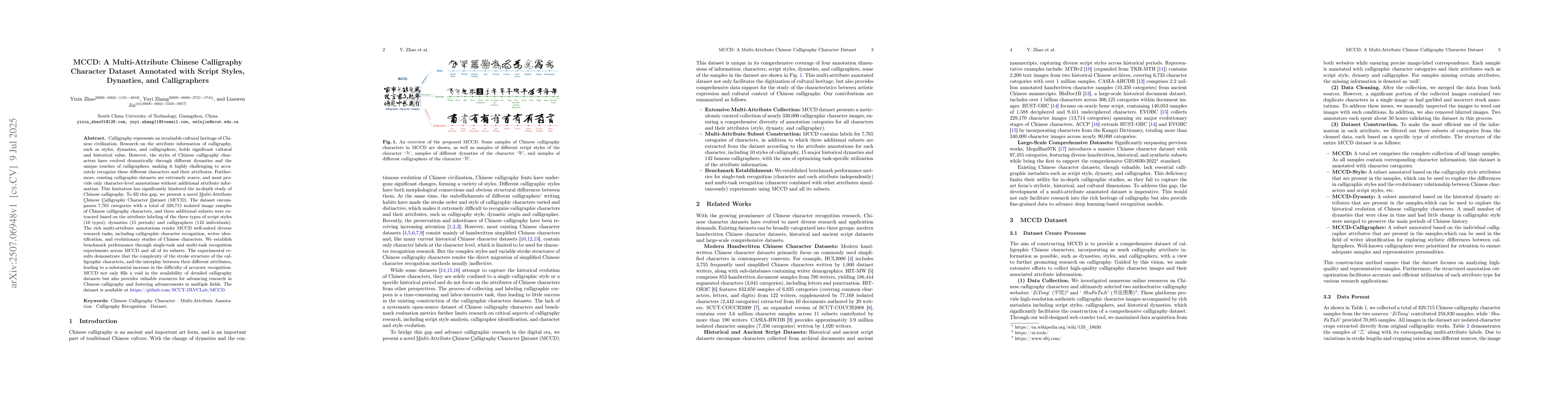 Research on the attribute information of calligraphy, such as styles, dynasties, and calligraphers, holds significant cultural and historical value. However, the styles of Chinese calligraphy characters have evolved dramatically through different dynasties and the unique touches of calligraphers, making it highly challenging to accurately recognize these different characters and their attributes. Furthermore, existing calligraphic datasets are extremely scarce, and most provide only character-level annotations without additional attribute information. This limitation has significantly hindered the in-depth study of Chinese calligraphy. To fill this gap, we present a novel Multi-Attribute Chinese Calligraphy Character Dataset (MCCD). The dataset encompasses 7,765 categories with a total of 329,715 isolated image samples of Chinese calligraphy characters, and three additional subsets were extracted based on the attribute labeling of the three types of script styles (10 types), dynasties (15 periods) and calligraphers (142 individuals). The rich multi-attribute annotations render MCCD well-suited diverse research tasks, including calligraphic character recognition, writer identification, and evolutionary studies of Chinese characters. We establish benchmark performance through single-task and multi-task recognition experiments across MCCD and all of its subsets. The experimental results demonstrate that the complexity of the stroke structure of the calligraphic characters, and the interplay between their different attributes, leading to a substantial increase in the difficulty of accurate recognition. MCCD not only fills a void in the availability of detailed calligraphy datasets but also provides valuable resources for advancing research in Chinese calligraphy and fostering advancements in multiple fields. The dataset is available at https://github.com/SCUT-DLVCLab/MCCD.