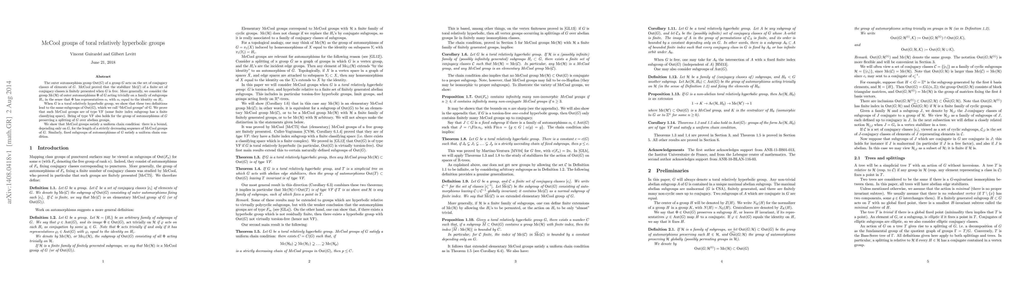 The paper introduces and analyzes McCool groups within the context of toral relatively hyperbolic groups, proving their finite presentability and type VF properties.