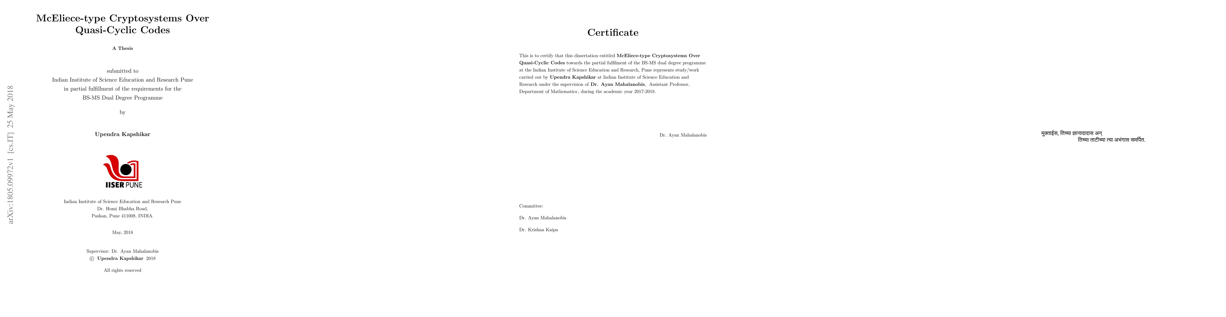 This thesis proposes a new McEliece-type cryptosystem over quasi-cyclic codes that is resistant to quantum Fourier sampling, offering enhanced security against quantum attacks. The proposed system relies on specific constraints of the quasi-cyclic code's automorphism group to achieve indistinguishability.