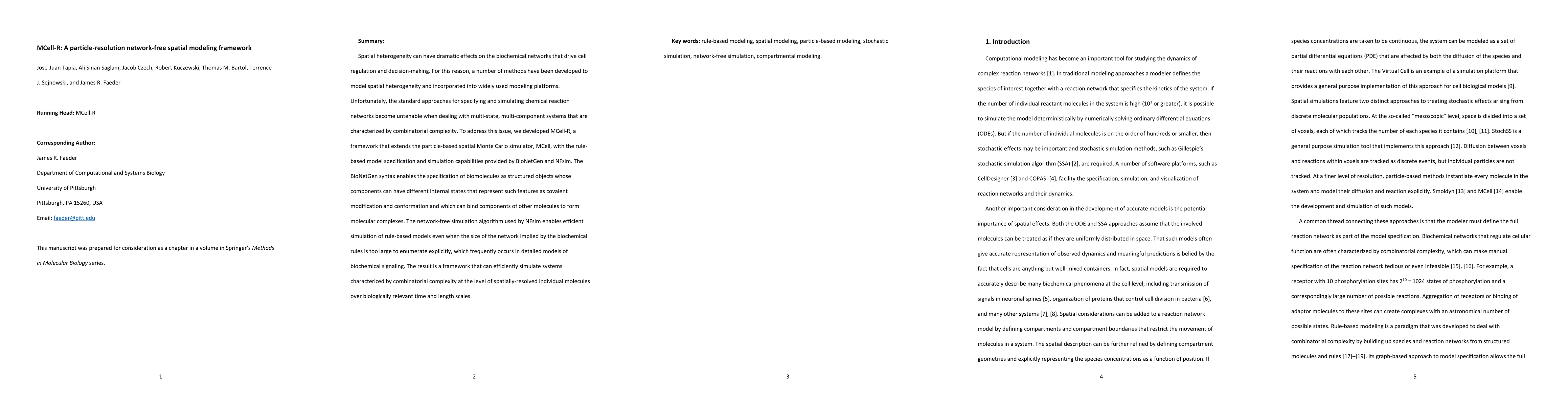 Researchers developed MCell-R, a framework that simulates complex biochemical networks at the molecular level without explicitly enumerating all possible interactions, enabling efficient modeling of spatially-resolved individual molecules over biologically relevant time and length scales.