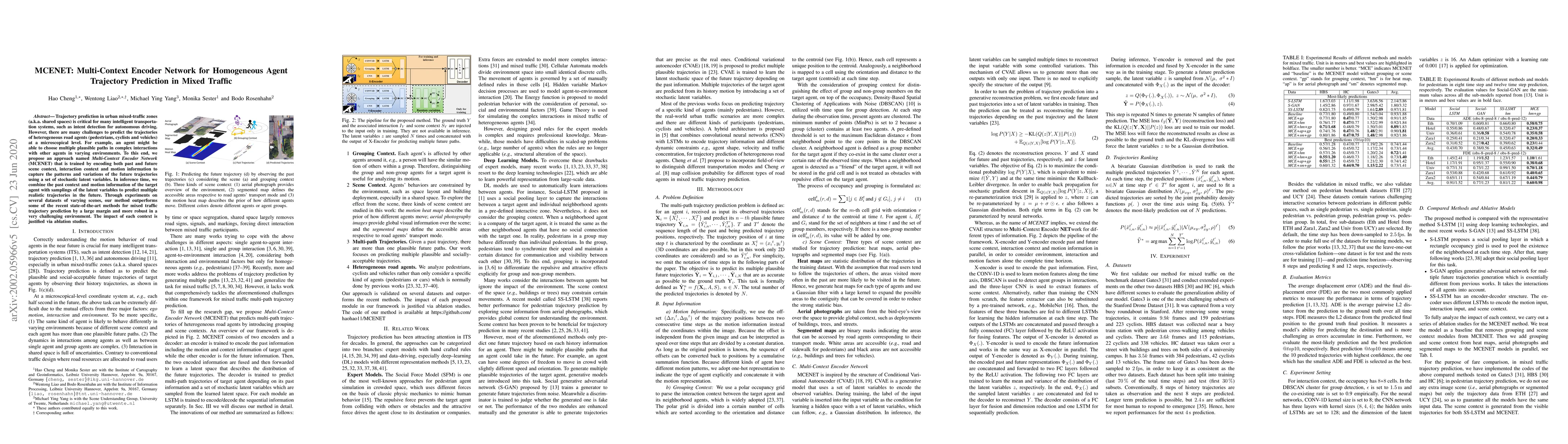 The MCENET model proposes a Multi-Context Encoder Network for predicting the trajectories of heterogeneous road agents in mixed traffic scenarios. It outperforms recent state-of-the-art methods by integrating past and future context, interaction context, and motion information to generate realistic future trajectories.
