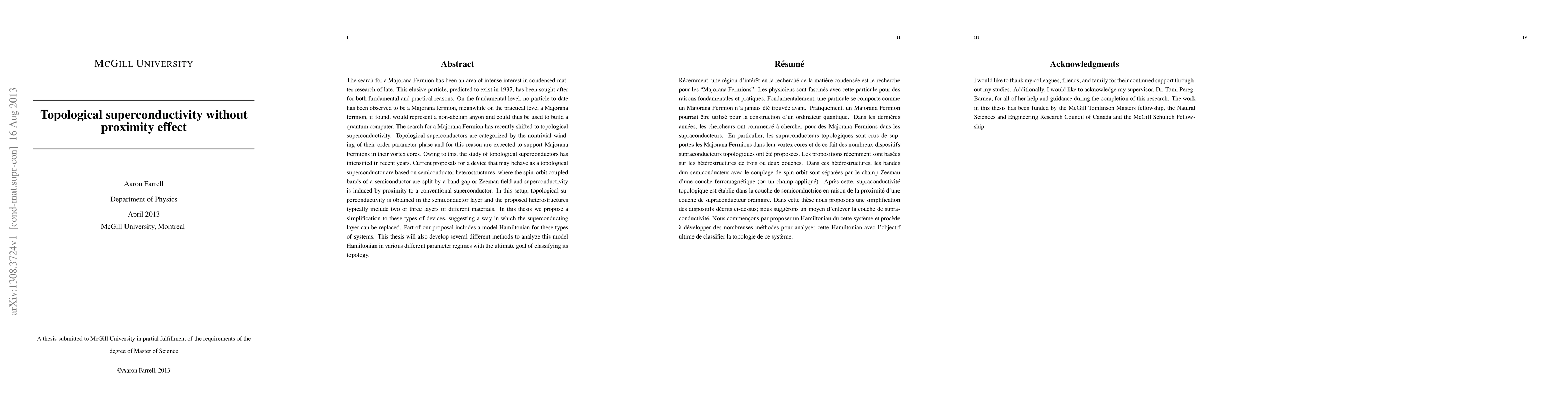 The search for a Majorana Fermion has been an area of intense interest in condensed matter research of late. This elusive particle, predicted to exist in 1937, has been sought after for both fundamental and practical reasons. On the fundamental level, no particle to date has been observed to be a Majorana fermion, meanwhile on the practical level a Majorana fermion, if found, would represent a non-abelian anyon and could thus be used to build a quantum computer. The search for a Majorana Fermion has recently shifted to topological superconductivity. Topological superconductors are categorized by the nontrivial wind- ing of their order parameter phase and for this reason are expected to support Majorana Fermions in their vortex cores. Owing to this, the study of topological superconductors has intensified in recent years. Current proposals for a device that may behave as a topological superconductor are based on semiconductor heterostructures, where the spin-orbit coupled bands of a semiconductor are split by a band gap or Zeeman field and superconductivity is induced by proximity to a conventional superconductor. In this setup, topological superconductivity is obtained in the semiconductor layer and the proposed heterostructures typically include two or three layers of different materials. In this thesis we propose a simplification to these types of devices, suggesting a way in which the superconducting layer can be replaced. Part of our proposal includes a model Hamiltonian for these types of systems. This thesis will also develop several different methods to analyze this model Hamiltonian in various different parameter regimes with the ultimate goal of classifying its topology.