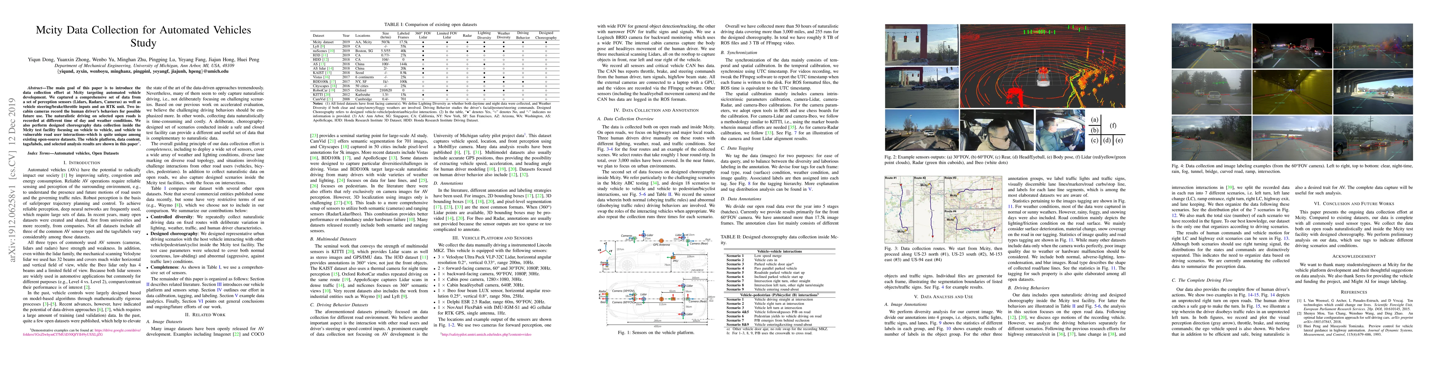 The main goal of this paper is to introduce the data collection effort at Mcity targeting automated vehicle development. We captured a comprehensive set of data from a set of perception sensors (Lidars, Radars, Cameras) as well as vehicle steering/brake/throttle inputs and an RTK unit. Two in-cabin cameras record the human driver's behaviors for possible future use. The naturalistic driving on selected open roads is recorded at different time of day and weather conditions. We also perform designed choreography data collection inside the Mcity test facility focusing on vehicle to vehicle, and vehicle to vulnerable road user interactions which is quite unique among existing open-source datasets. The vehicle platform, data content, tags/labels, and selected analysis results are shown in this paper.