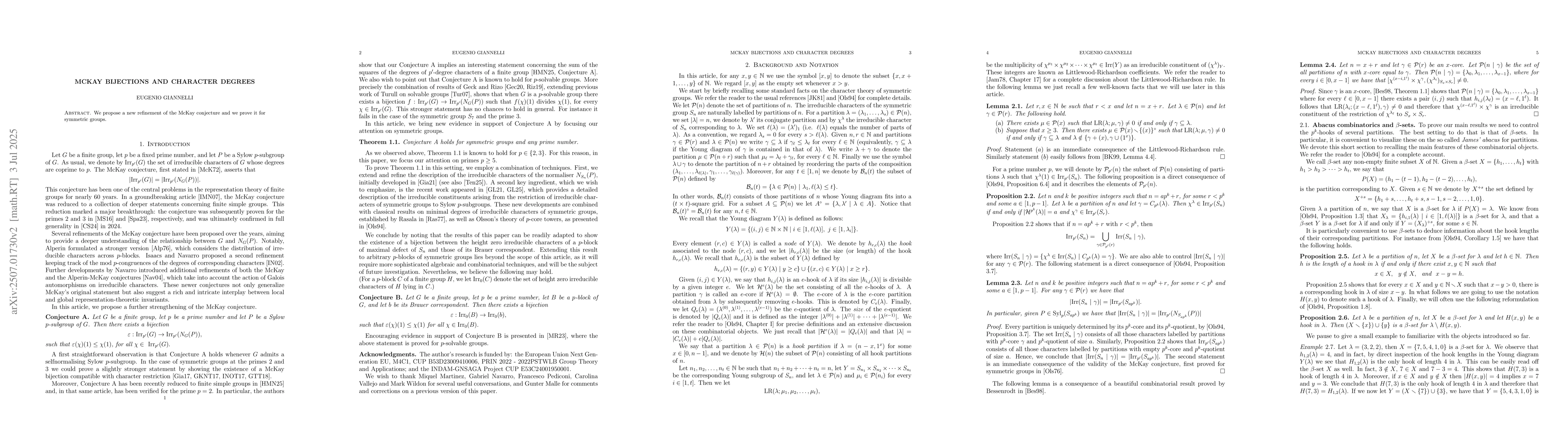 We propose a new refinement of the McKay conjecture and we prove it for symmetric groups.