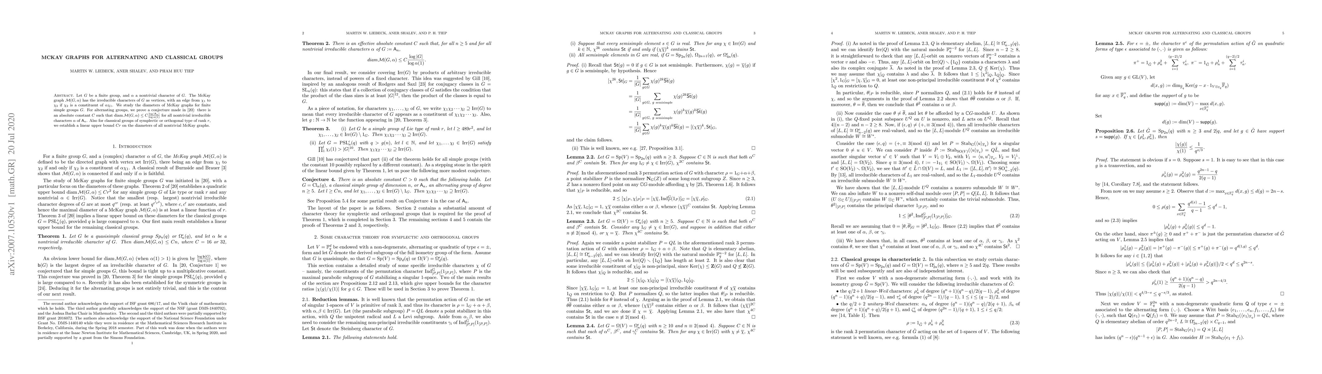 This paper investigates the diameters of McKay graphs for finite simple groups, proving a conjecture for alternating groups and establishing a linear upper bound for classical groups of symplectic or orthogonal type. The results provide insights into the structure of these graphs based on group characters.