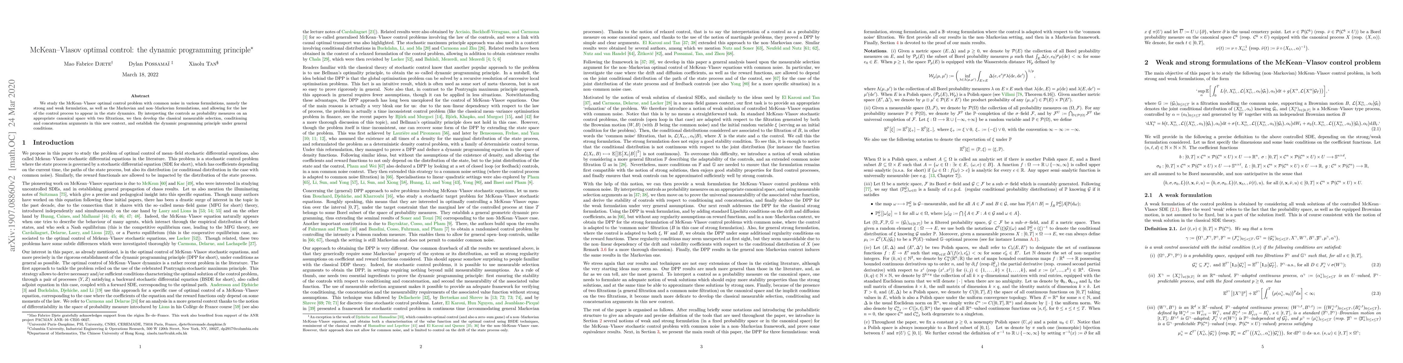 The research establishes a new framework for analyzing McKean-Vlasov SDEs and provides a rigorous mathematical foundation for the study of mean-field stochastic control.
