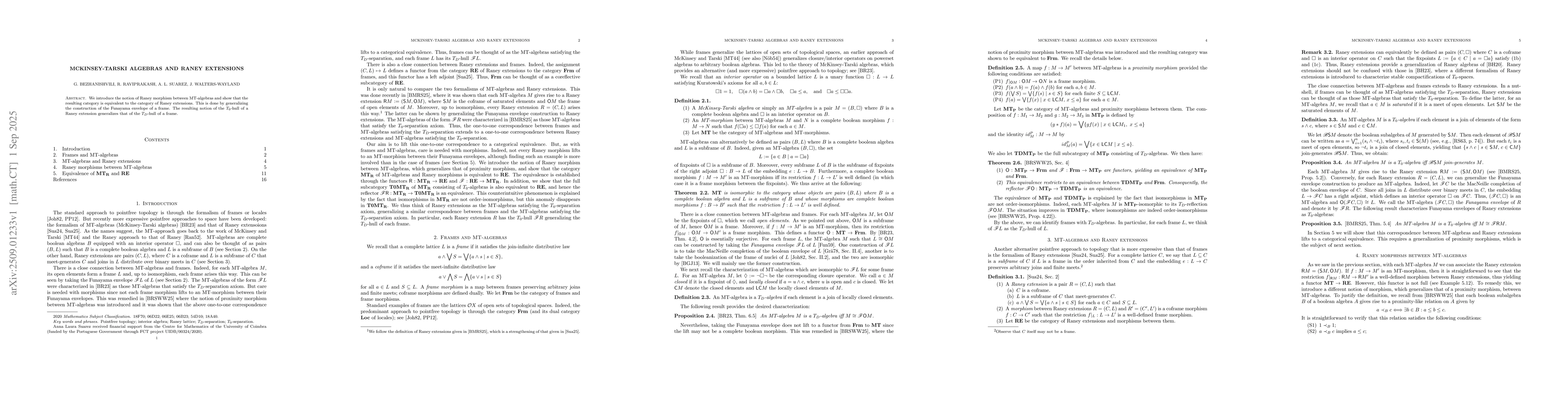 We introduce the notion of Raney morphism between MT-algebras and show that the resulting category is equivalent to the category of Raney extensions. This is done by generalizing the construction of the Funayama envelope of a frame. The resulting notion of the $T_0$-hull of a Raney extension generalizes that of the $T_D$-hull of a frame.