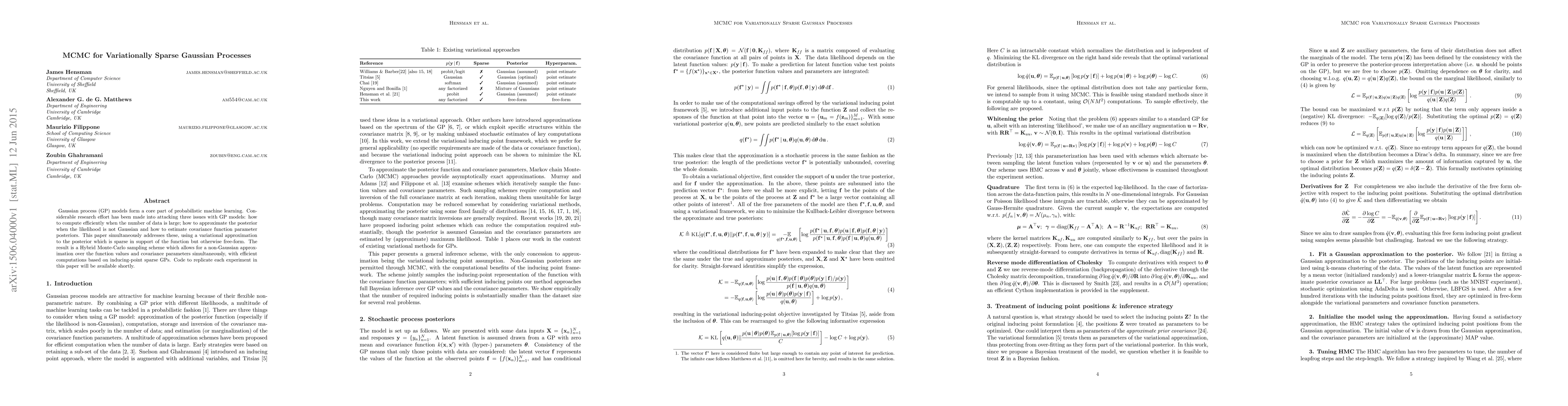 This paper proposes a variational approximation for sparse Gaussian processes, enabling efficient computation and non-Gaussian likelihood approximations. It introduces a Hybrid Monte-Carlo sampling scheme that leverages inducing-point sparse GPs for scalable and accurate posterior estimation.