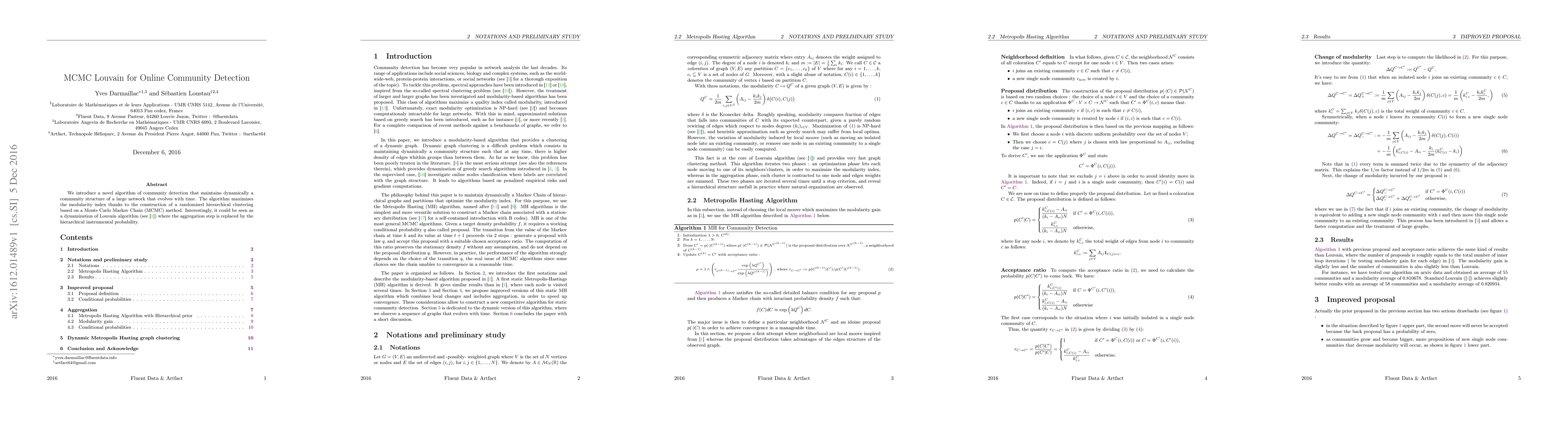 This paper proposes a novel MCMC-based algorithm for dynamic community detection in evolving networks, optimizing modularity through a randomized hierarchical clustering approach. It represents a dynamic adaptation of the Louvain method, replacing the aggregation step with hierarchical instrumental probability.