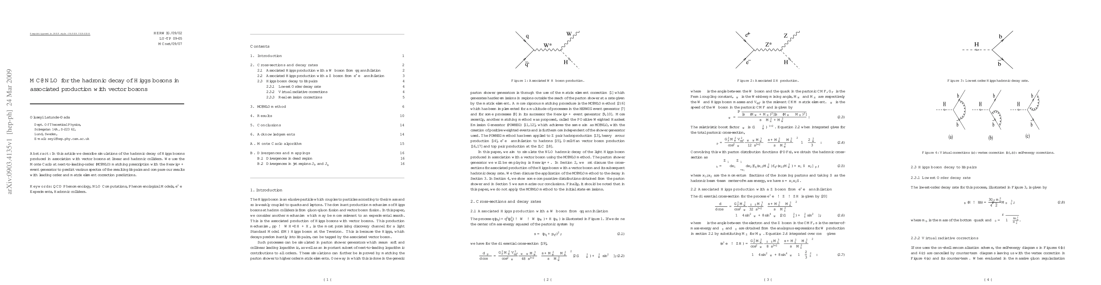 This paper simulates the hadronic decay of Higgs bosons produced alongside vector bosons using the MC@NLO method with the Herwig++ generator, predicting b-anti-b pair spectra and comparing results against leading order and matrix element corrections.