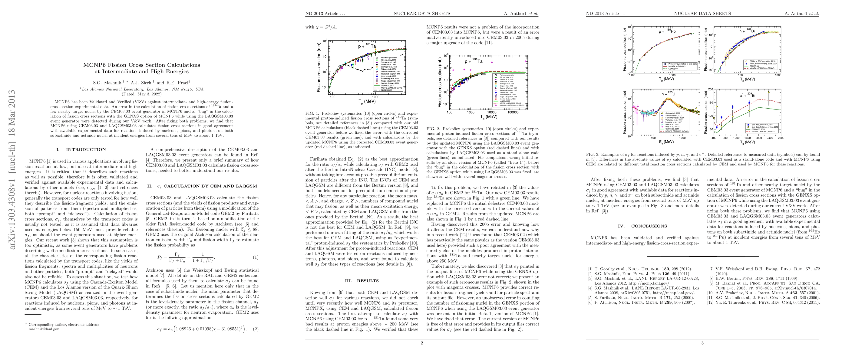 The paper validates and verifies MCNP6 against intermediate- and high-energy fission cross-section data, discovering and fixing errors in the CEM03.03 and LAQGSM03.03 event generators. Post-correction, MCNP6 shows good agreement with experimental data for nucleon, pion, and photon-induced reactions across subactinide and actinide nuclei.