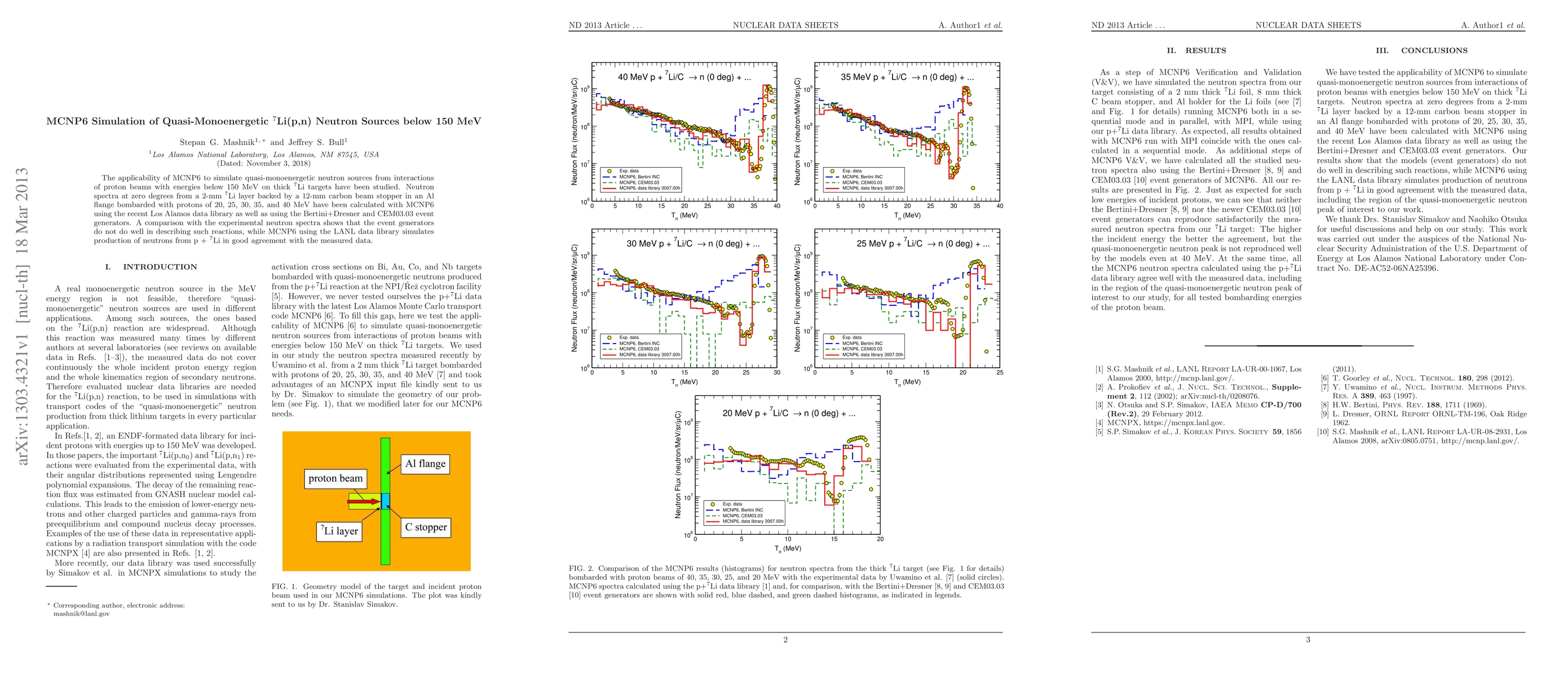 The study evaluates MCNP6's effectiveness in simulating quasi-monoenergetic neutron sources from 7Li(p,n) reactions using proton energies below 150 MeV. MCNP6 with the LANL data library accurately reproduces neutron spectra compared to experimental data, while event generators like Bertini+Dresner and CEM03.03 show poor performance.