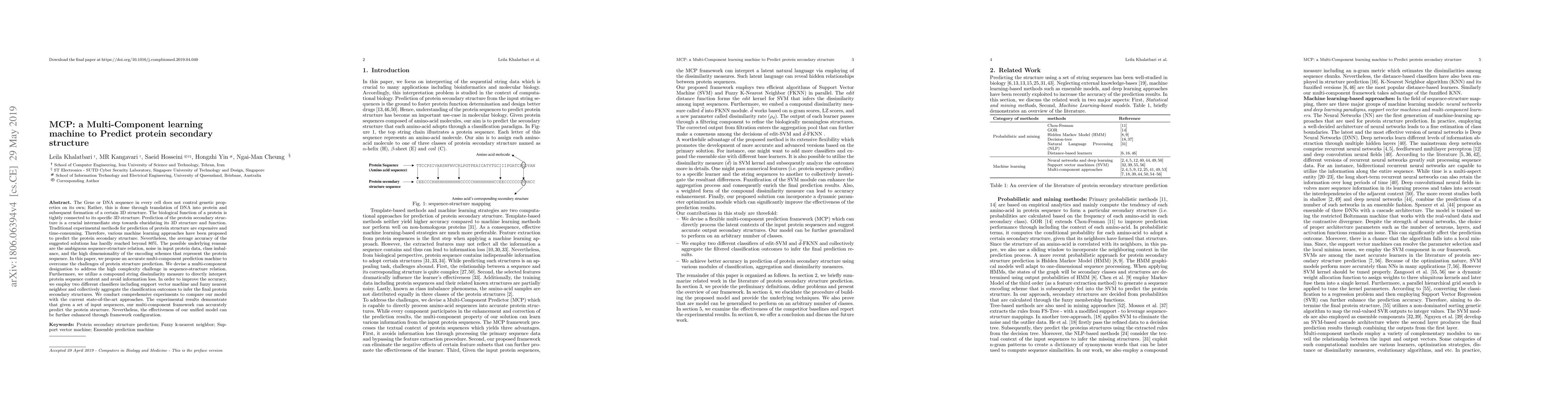 This paper introduces MCP, a multi-component learning machine designed to predict protein secondary structures more accurately than existing methods. The proposed model addresses challenges like sequence-structure ambiguity and high dimensionality by employing a combination of support vector machine and fuzzy nearest neighbor classifiers, achieving better accuracy in protein structure prediction.