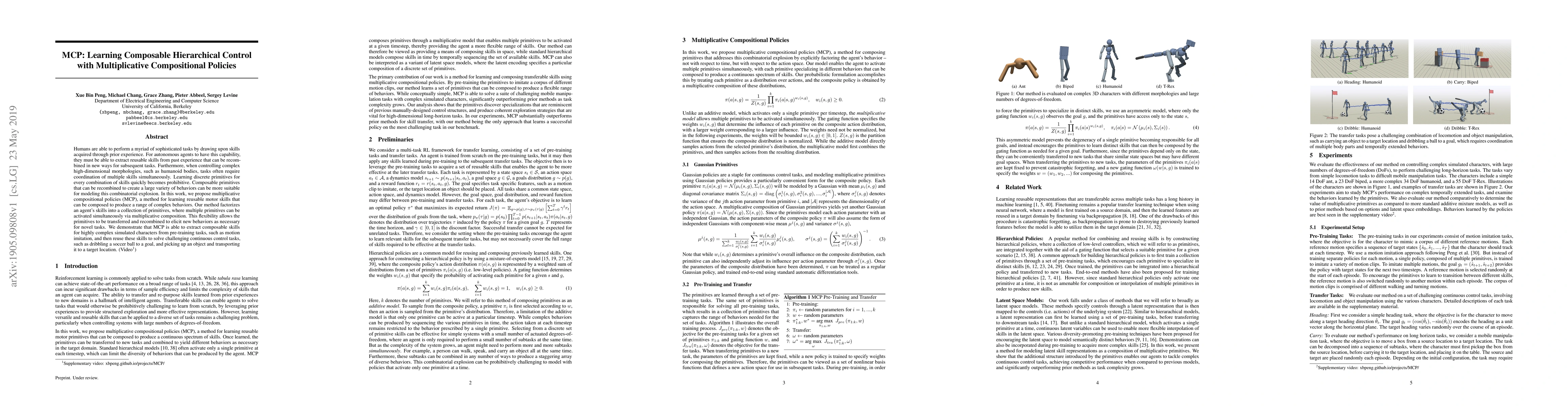 Researchers propose a method for learning reusable motor skills that can be composed to produce complex behaviors in autonomous agents. Their approach, called multiplicative compositional policies (MCP), enables the transfer and recombination of skills to solve novel tasks.