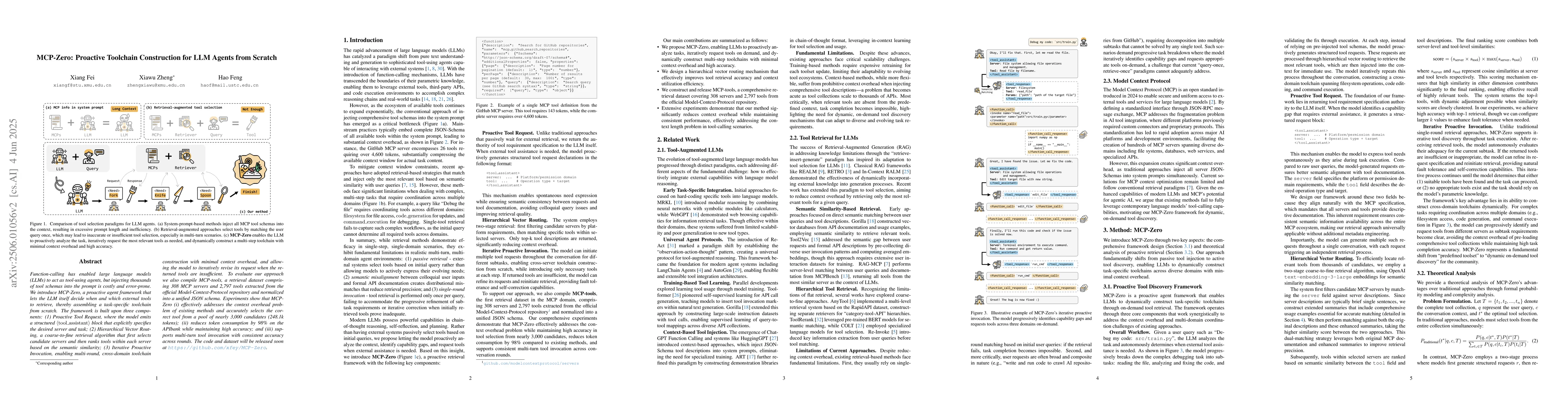 MCP-Zero presents a novel proactive agent framework for LLMs that enables the models to decide on tool retrieval and assembly, significantly improving the efficiency of tool-using agents.