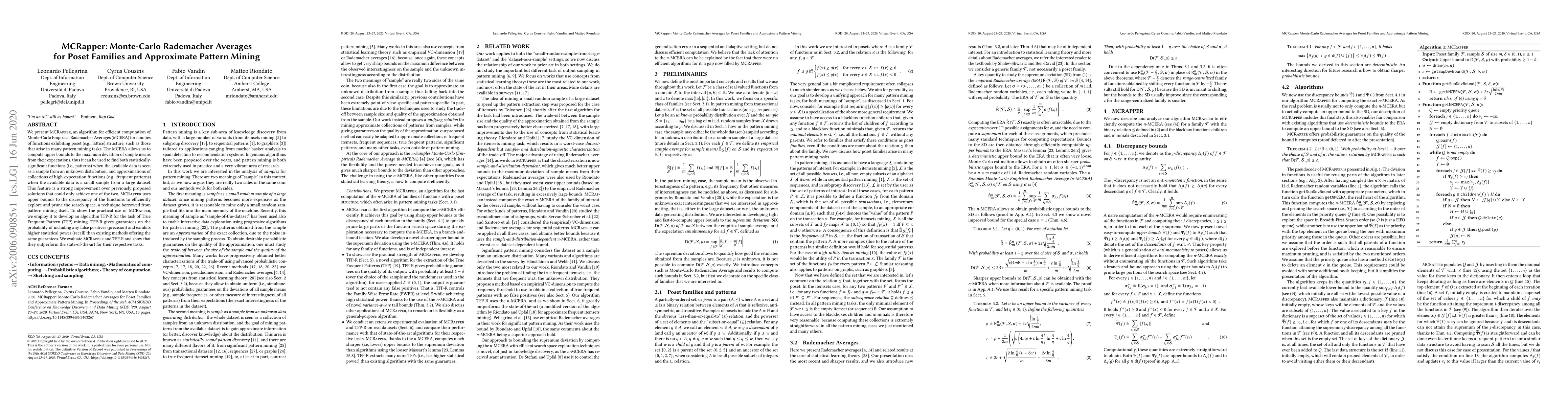 MCRapper is an algorithm for computing Monte-Carlo Empirical Rademacher Averages for poset families, enabling efficient pattern mining and statistical significance detection. It outperforms existing methods in both identifying statistically significant patterns and mining true frequent patterns with precision guarantees.