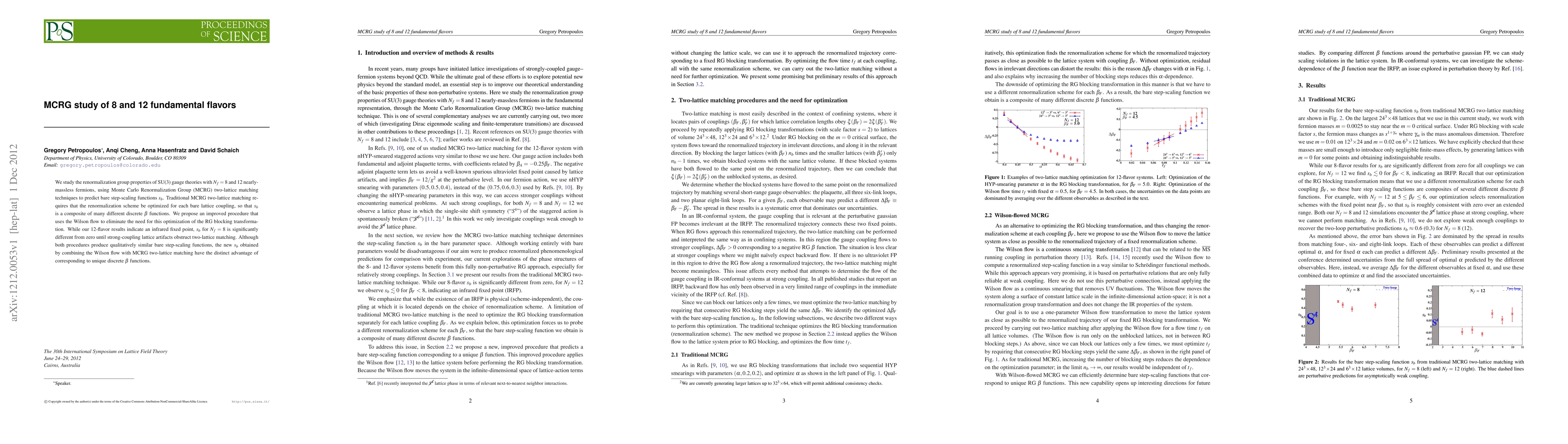 We study the renormalization group properties of SU(3) gauge theories with N_f=8 and 12 nearly-massless fermions, using Monte Carlo Renormalization Group (MCRG) two-lattice matching techniques to predict bare step-scaling functions s_b. Traditional MCRG two-lattice matching requires that the renormalization scheme be optimized for each bare lattice coupling, so that s_b is a composite of many different discrete beta functions. We propose an improved procedure that uses the Wilson flow to eliminate the need for this optimization of the RG blocking transformation. While our 12-flavor results indicate an infrared fixed point, s_b for N_f=8 is significantly different from zero until strong-coupling lattice artifacts obstruct two-lattice matching. Although both procedures produce qualitatively similar bare step-scaling functions, the new s_b obtained by combining the Wilson flow with MCRG two-lattice matching have the distinct advantage of corresponding to unique discrete beta functions.