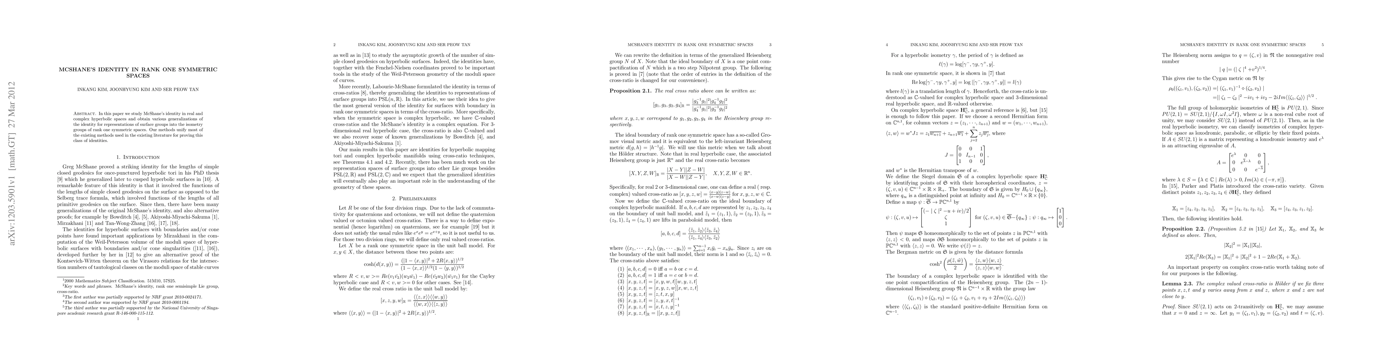 Summary: This paper generalizes McShane's identity for surface groups acting on rank one symmetric spaces, unifying various existing methods and providing new insights into the isometry groups of hyperbolic spaces.