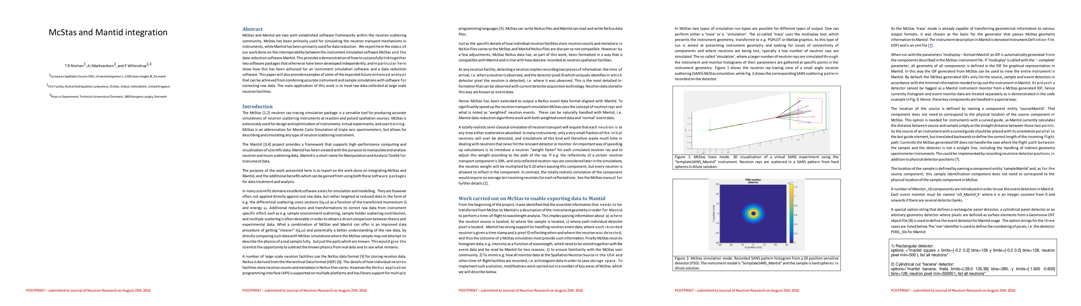 McStas and Mantid are two well established software frameworks within the neutron scattering community. McStas has been primarily used for simulating the neutron transport of instruments, while Mantid has been primarily used for data reduction. We report here the status of our work done on the interoperability between the instrument simulation software McStas and the data reduction software Mantid. This provides a demonstration of how to successfully link together two software that otherwise have been developed independently, and in particular here show how this has been achieved for an instrument simulation software and a data reduction software. This paper will also provide examples of some of the expected future enhanced analysis that can be achieved from combining accurate instrument and sample simulations with software for correcting raw data. In the case of this work for raw data collected at large scale neutron facilities.