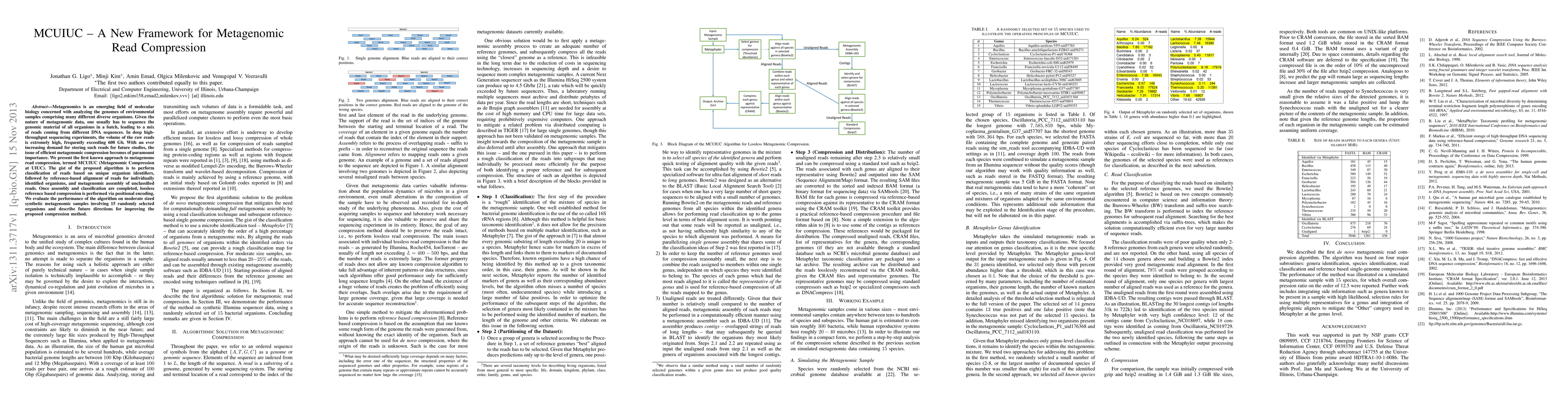 MCUIUC is a novel framework for compressing metagenomic reads, employing classification, reference-based alignment, and metagenomic assembly for efficient storage. The method achieves lossless compression through positional encoding, demonstrating potential for managing large volumes of sequencing data.