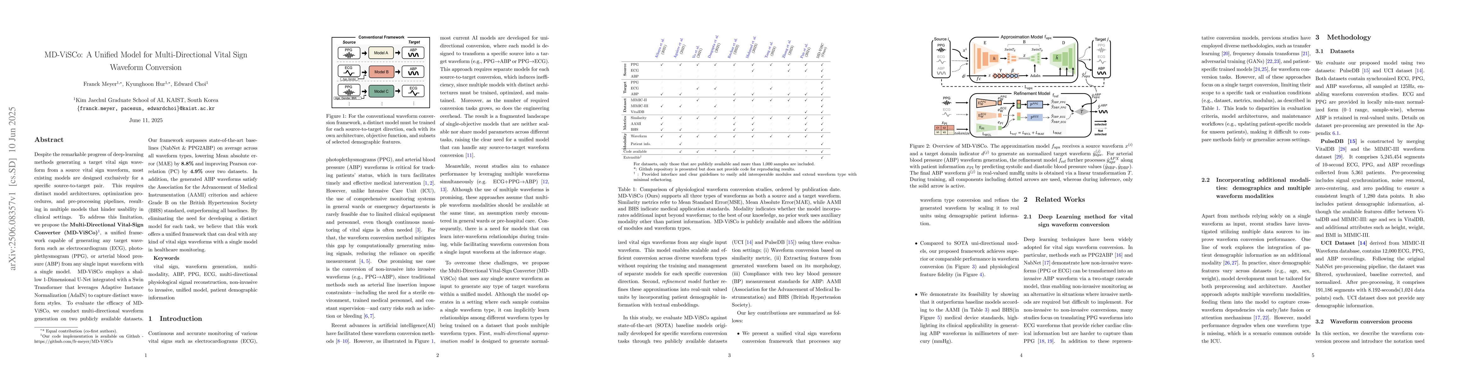 Researchers developed a unified model called MD-ViSCo that can generate any target vital sign waveform from a single input waveform, improving performance over existing models in clinical settings.