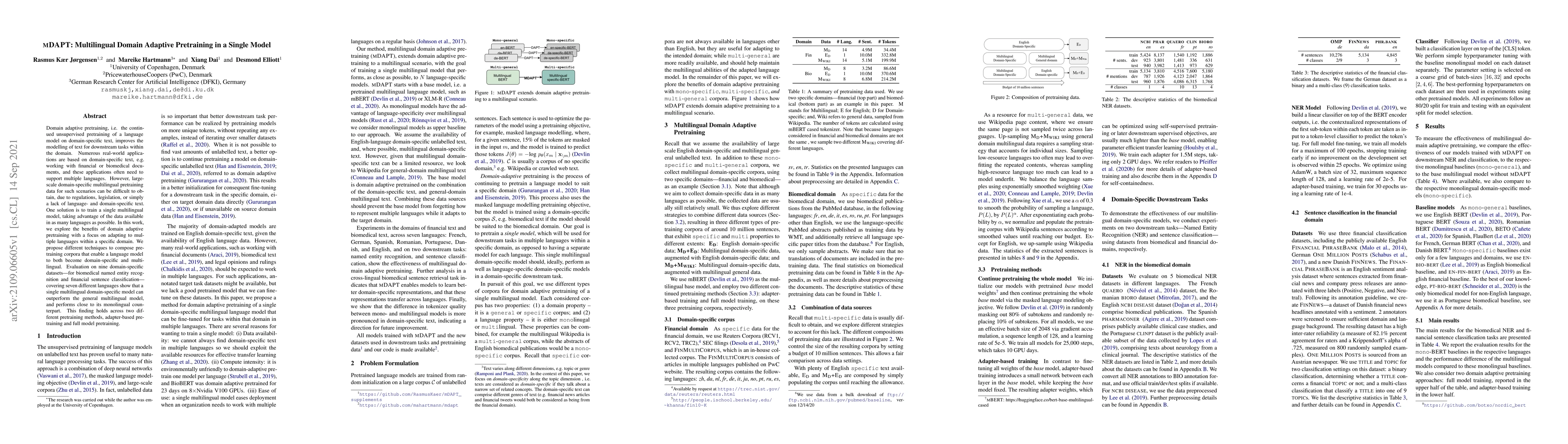 This paper proposes techniques for multilingual domain adaptive pretraining within a single model to improve performance on domain-specific tasks across multiple languages. Evaluations on biomedical and financial datasets show that such a model can outperform general multilingual models and perform nearly as well as monolingual counterparts.