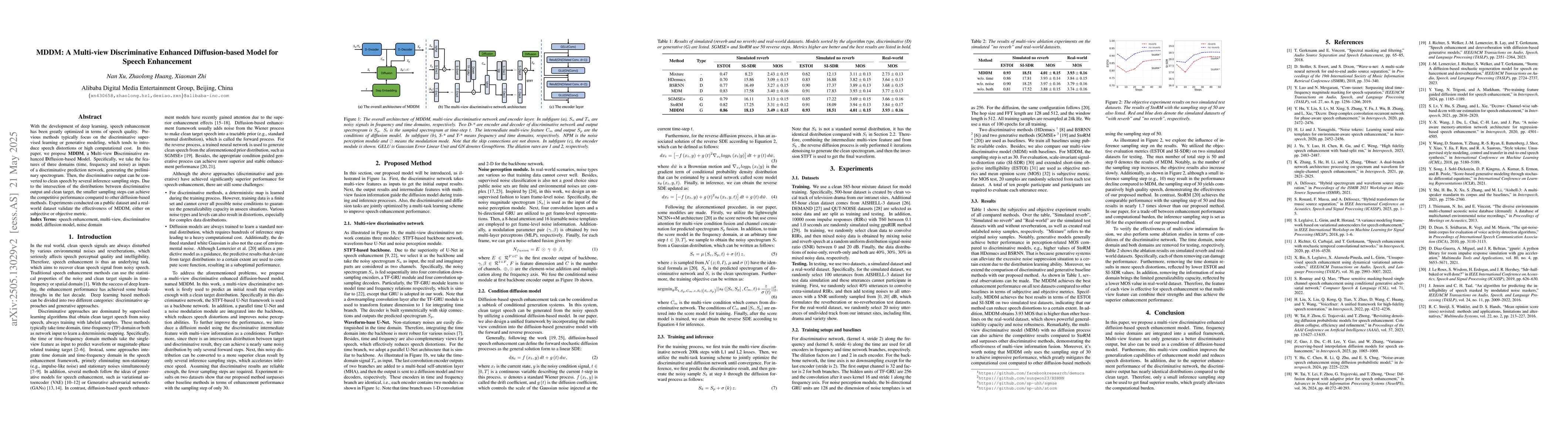 MDDM presents a novel multi-view discriminative enhanced diffusion-based model for speech enhancement, combining time, frequency, and noise domain features for improved performance.