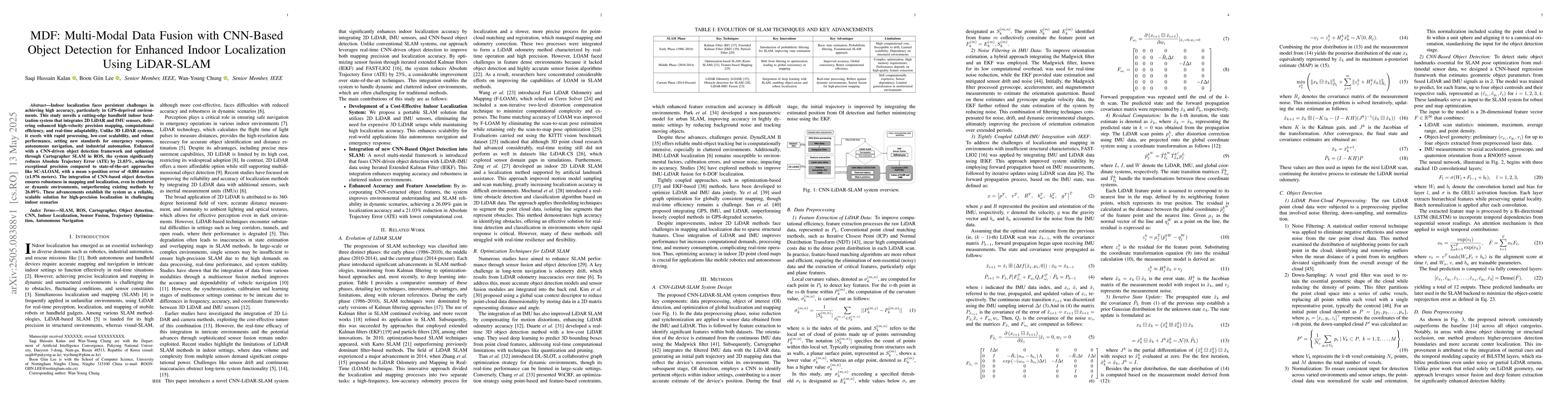 The development of a multi-modal data fusion approach combining 2D LiDAR, IMU, and CNN-based object detection with Cartographer SLAM for precise indoor localization.