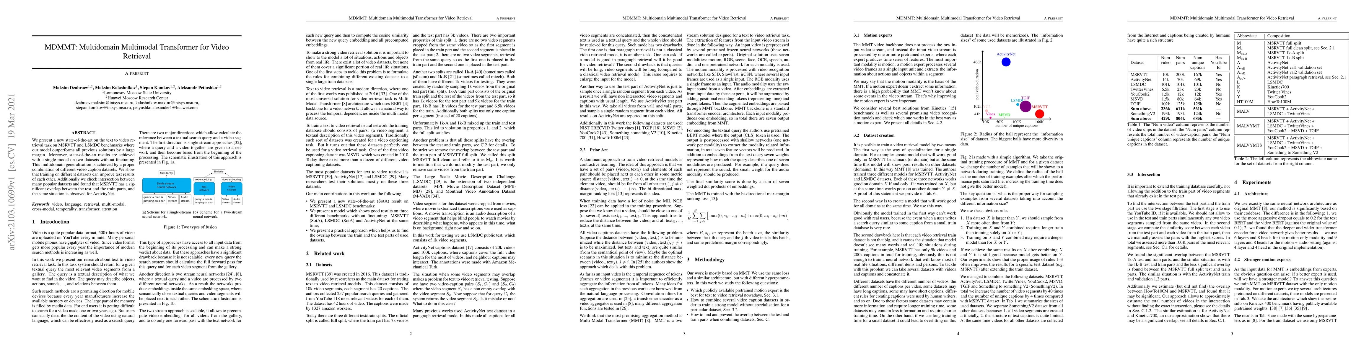 We present a new state-of-the-art on the text to video retrieval task on MSRVTT and LSMDC benchmarks where our model outperforms all previous solutions by a large margin. Moreover, state-of-the-art results are achieved with a single model on two datasets without finetuning. This multidomain generalisation is achieved by a proper combination of different video caption datasets. We show that training on different datasets can improve test results of each other. Additionally we check intersection between many popular datasets and found that MSRVTT has a significant overlap between the test and the train parts, and the same situation is observed for ActivityNet.