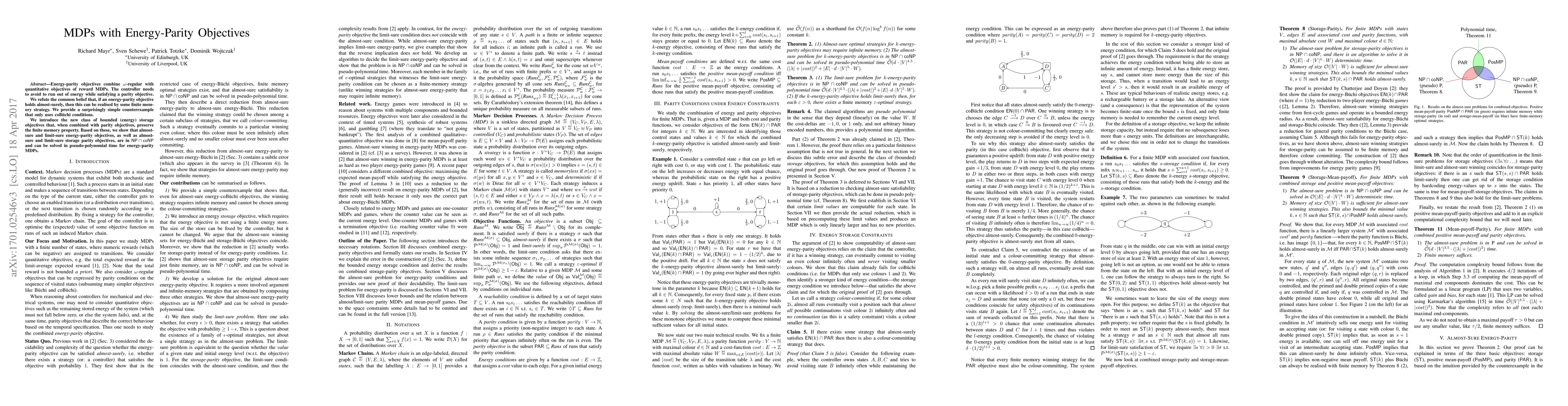 Energy-parity objectives combine $\omega$-regular with quantitative objectives of reward MDPs. The controller needs to avoid to run out of energy while satisfying a parity objective. We refute the common belief that, if an energy-parity objective holds almost-surely, then this can be realised by some finite memory strategy. We provide a surprisingly simple counterexample that only uses coB\"uchi conditions. We introduce the new class of bounded (energy) storage objectives that, when combined with parity objectives, preserve the finite memory property. Based on these, we show that almost-sure and limit-sure energy-parity objectives, as well as almost-sure and limit-sure storage parity objectives, are in $\mathit{NP}\cap \mathit{coNP}$ and can be solved in pseudo-polynomial time for energy-parity MDPs.