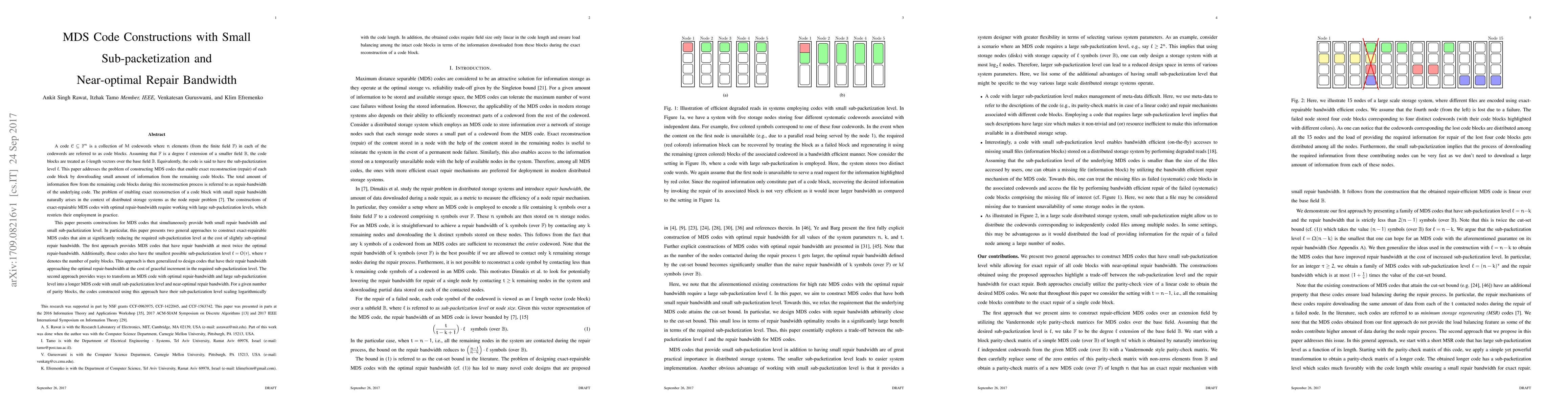 This paper constructs MDS codes with small sub-packetization and near-optimal repair bandwidth, addressing practical limitations of existing methods in distributed storage systems. It presents two approaches: one offering repair bandwidth at most twice optimal with minimal sub-packetization, and another transforming existing codes for near-optimal repair while maintaining logarithmic sub-packetization scaling.