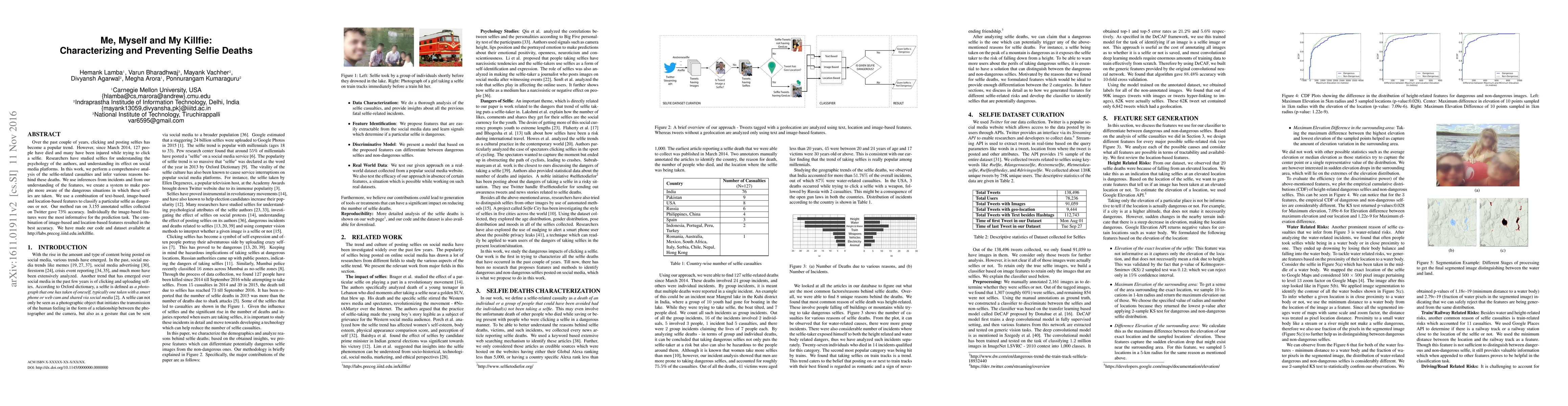 This paper analyzes selfie-related deaths since 2014 and develops a system to classify selfies as dangerous using text-based, image-based, and location-based features, achieving 73% accuracy on a dataset of 3,155 annotated selfies. The study aims to raise awareness about the risks associated with selfie-taking.
