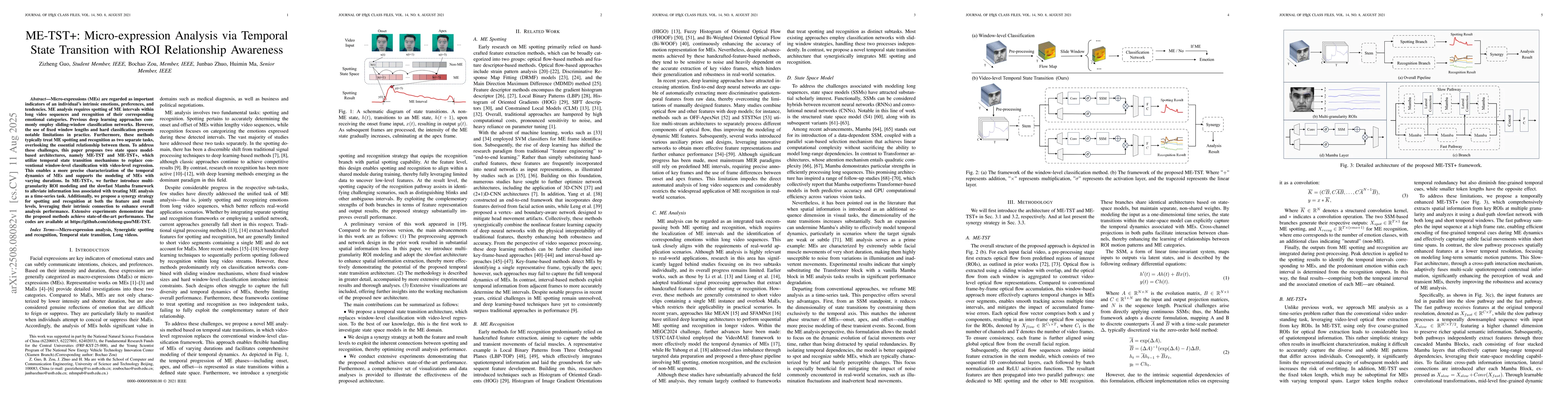 This paper proposes ME-TST and ME-TST+ architectures for micro-expression (ME) analysis, utilizing temporal state transition mechanisms with video-level regression, multi-granularity ROI modeling, and a slowfast Mamba framework to address limitations of previous sliding-window classification methods.