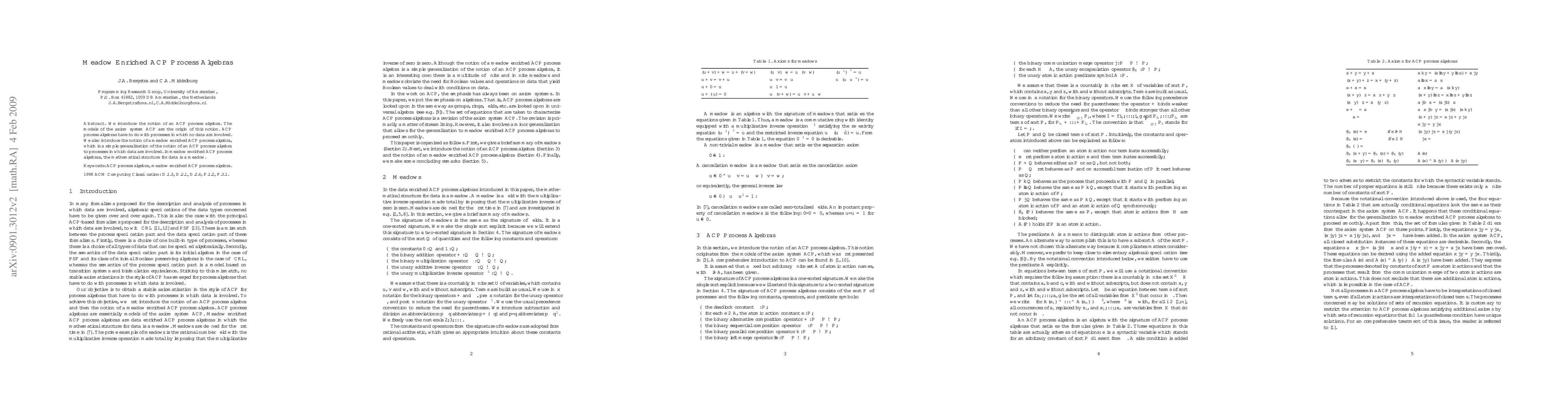 Researchers introduce a new mathematical framework for process algebras, expanding on existing ACP process algebra to include data involvement. They propose a 'meadow enriched' approach, using mathematical structures called meadows to represent data in these processes.