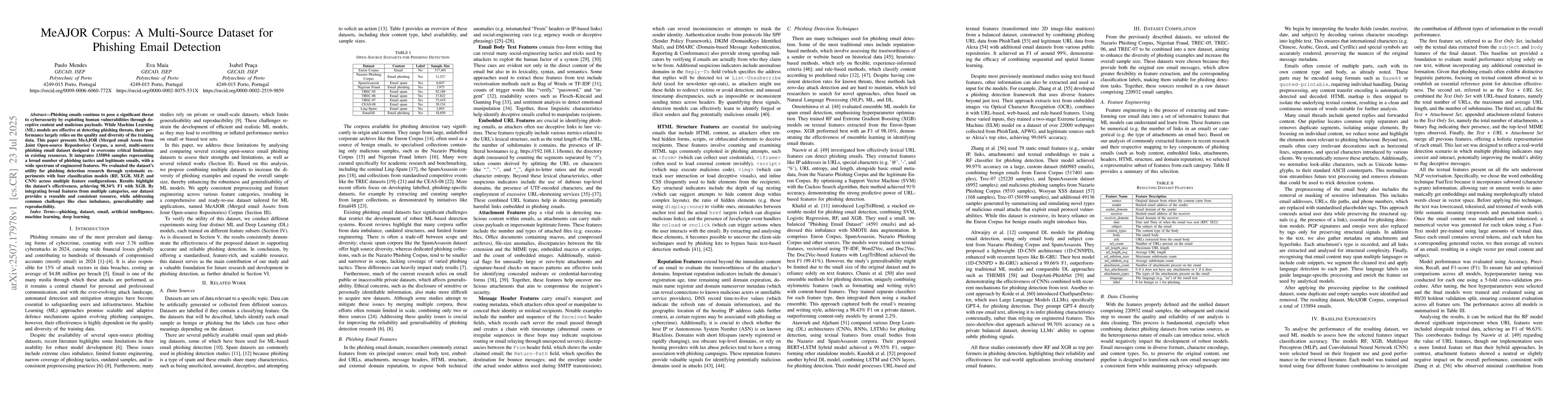 The MeAJOR Corpus is a comprehensive dataset of 135,894 phishing and legitimate emails, addressing limitations in existing datasets for phishing detection. Experiments with four ML models achieved high accuracy, demonstrating its utility for research and providing a reusable resource to combat phishing threats.