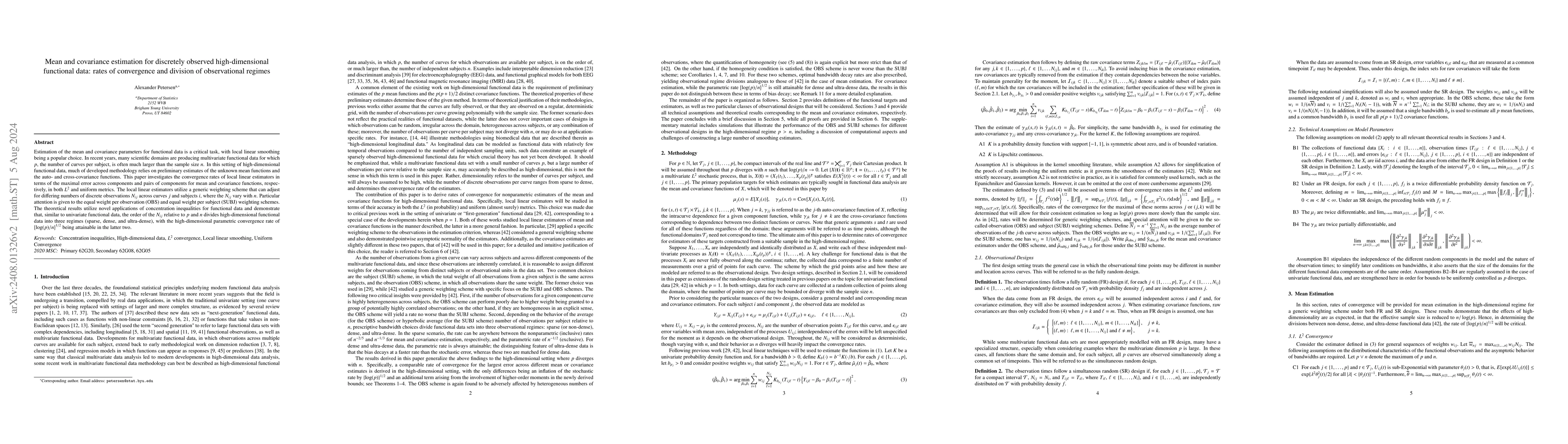 This paper studies the convergence rates of local linear estimators for high-dimensional functional data, showing that the number of observations per curve affects the estimation accuracy. It identifies three observational regimes (sparse, dense, and ultra-dense) and demonstrates a high-dimensional convergence rate of $\left\{\log(p)/n\right\}^{1/2}$ in dense and ultra-dense regimes.