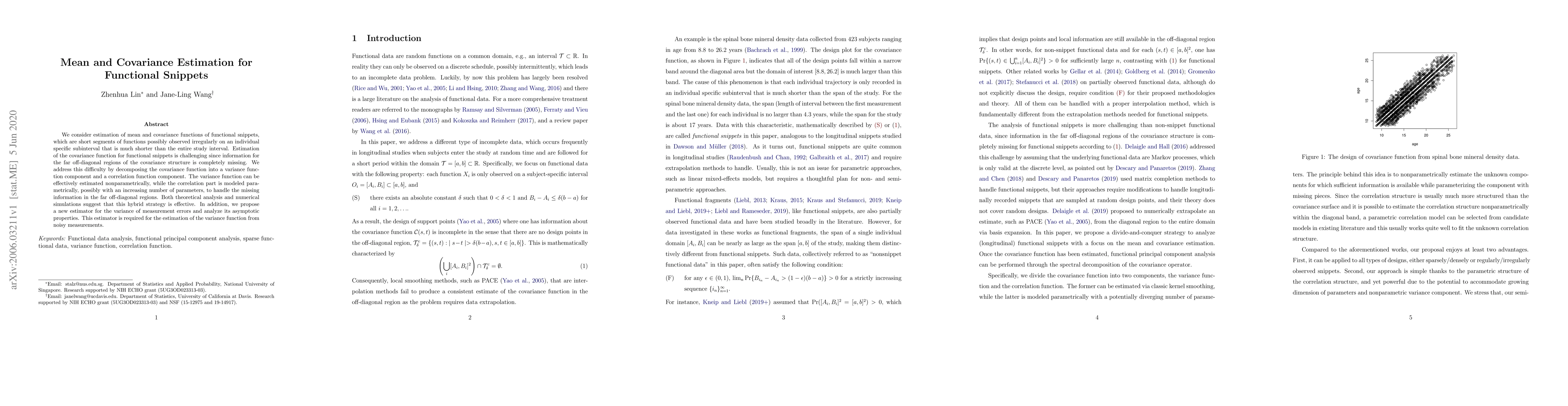 Researchers develop an effective method to estimate mean and covariance functions of functional snippets, a concept used in modeling irregularly observed data, by combining nonparametric variance estimation with parametric correlation modeling. Their approach successfully handles missing information in the covariance structure.