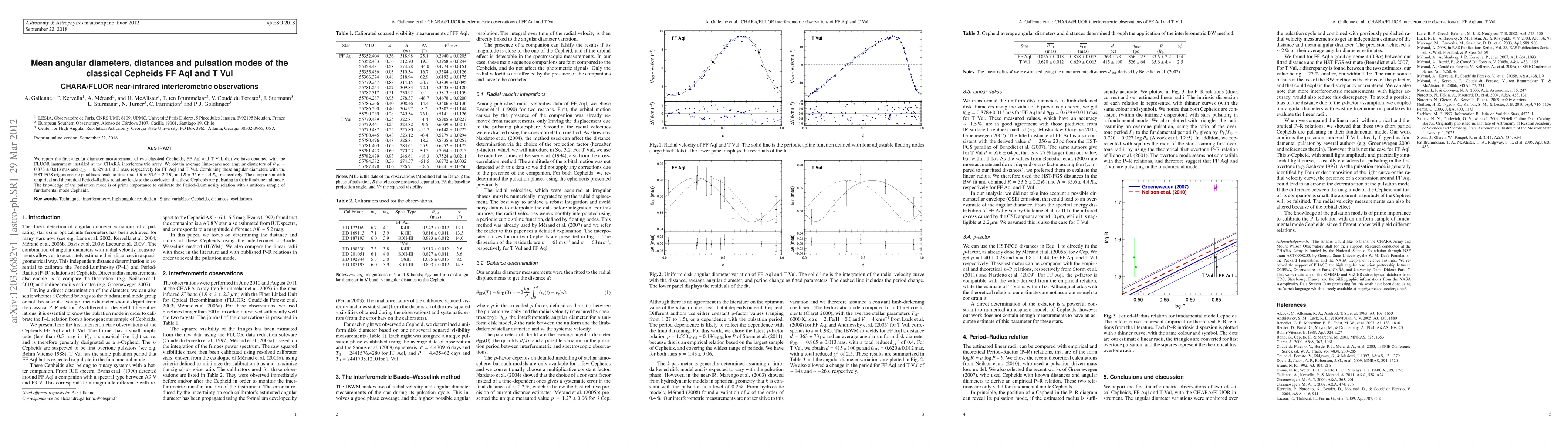 This study reports the first near-infrared interferometric measurements of the classical Cepheids FF Aql and T Vul using the CHARA/FLUOR array, revealing their angular diameters and linear radii. The findings suggest both stars are pulsating in their fundamental mode, crucial for calibrating the Period-Luminosity relation.
