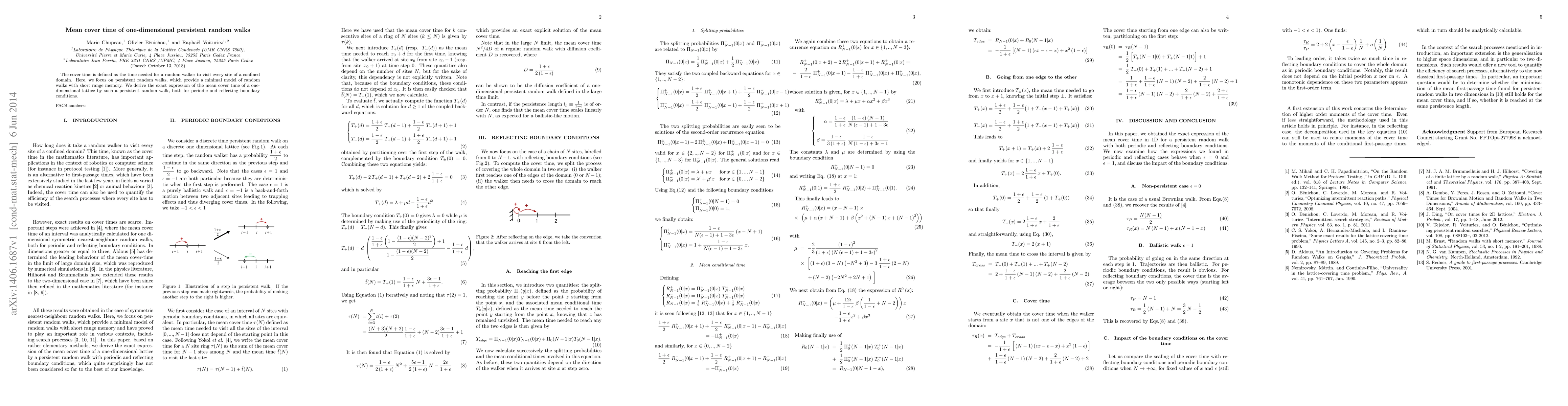 This paper derives the exact mean cover time for a one-dimensional persistent random walk on a lattice, considering both periodic and reflecting boundary conditions, providing a minimal model of random walks with short-range memory.