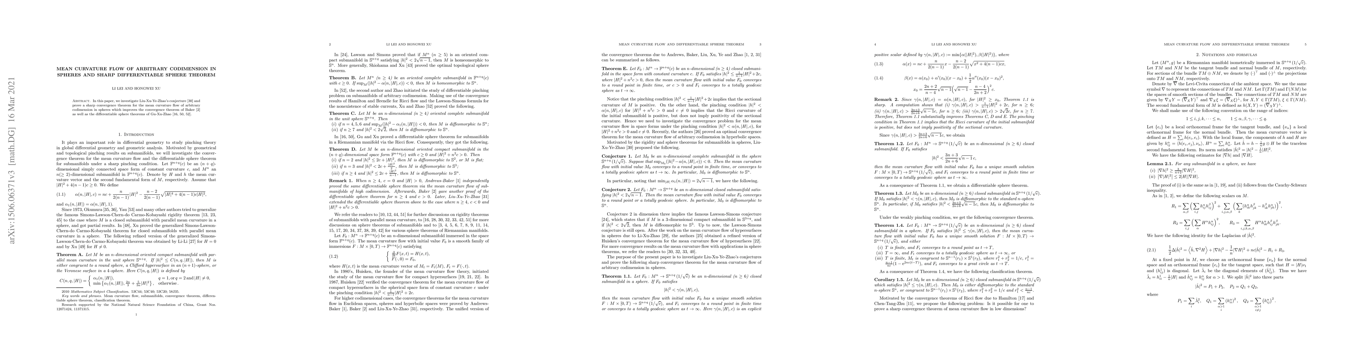 In this paper, we investigate Liu-Xu-Ye-Zhao's conjecture [30] and prove a sharp convergence theorem for the mean curvature flow of arbitrary codimension in spheres which improves the convergence theorem of Baker [2] as well as the differentiable sphere theorems of Gu-Xu-Zhao [16, 50, 52].