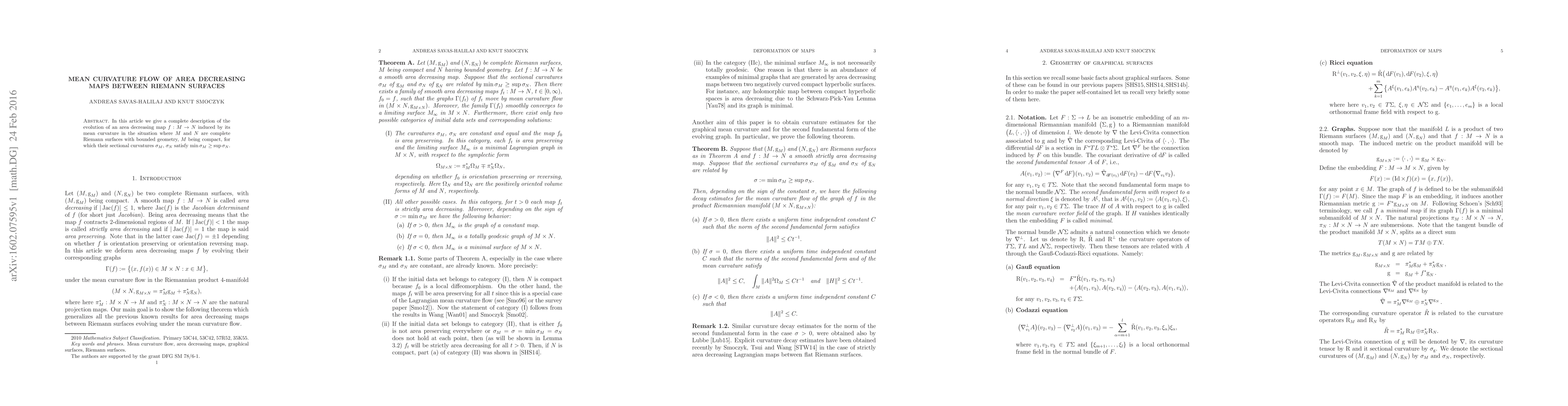 This paper provides a detailed analysis of the mean curvature flow for area decreasing maps between compact Riemann surfaces, under conditions where the sectional curvatures of the surfaces satisfy $\min\sigma_M \ge \sup\sigma_N$. The study focuses on the evolution induced by the mean curvature.
