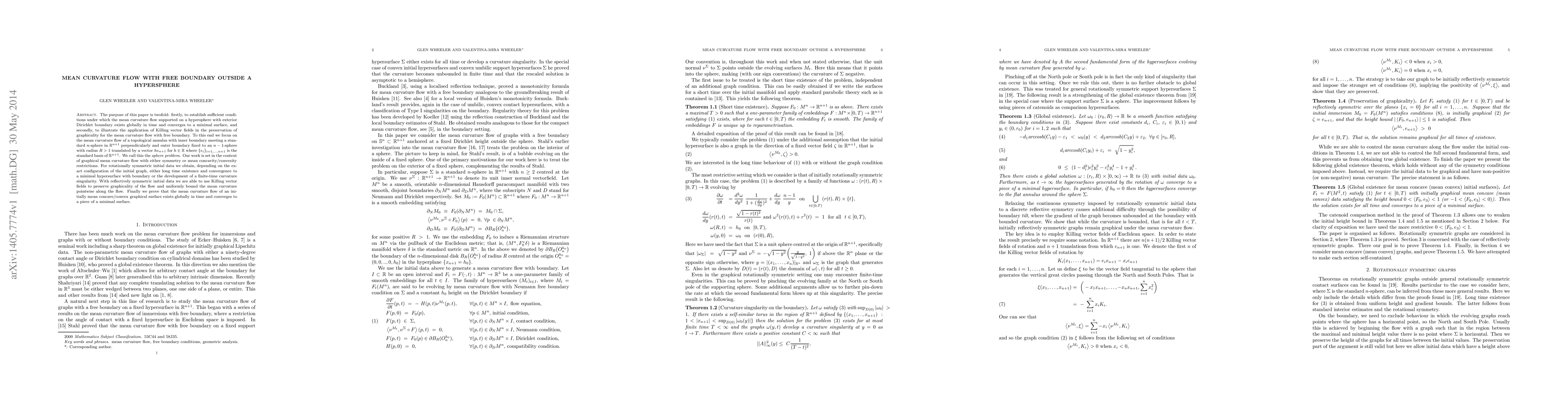The purpose of this paper is twofold: firstly, to establish sufficient conditions under which the mean curvature flow supported on a hypersphere with exterior Dirichlet boundary exists globally in time and converges to a minimal surface, and secondly, to illustrate the application of Killing vector fields in the preservation of graphicality for the mean curvature flow with free boundary. To this end we focus on the mean curvature flow of a topological annulus with inner boundary meeting a standard n-sphere in \R^{n+1} perpendicularly and outer boundary fixed to an (n-1)-sphere with radius R>1 at a fixed height h. We call this the \emph{sphere problem}. Our work is set in the context of graphical mean curvature flow with either symmetry or mean concavity/convexity restrictions. For rotationally symmetric initial data we obtain, depending on the exact configuration of the initial graph, either long time existence and convergence to a minimal hypersurface with boundary or the development of a finite-time curvature singularity. With reflectively symmetric initial data we are able to use Killing vector fields to preserve graphicality of the flow and uniformly bound the mean curvature pointwise along the flow. Finally we prove that the mean curvature flow of an initially mean concave/convex graphical surface exists globally in time and converges to a piece of a minimal surface.