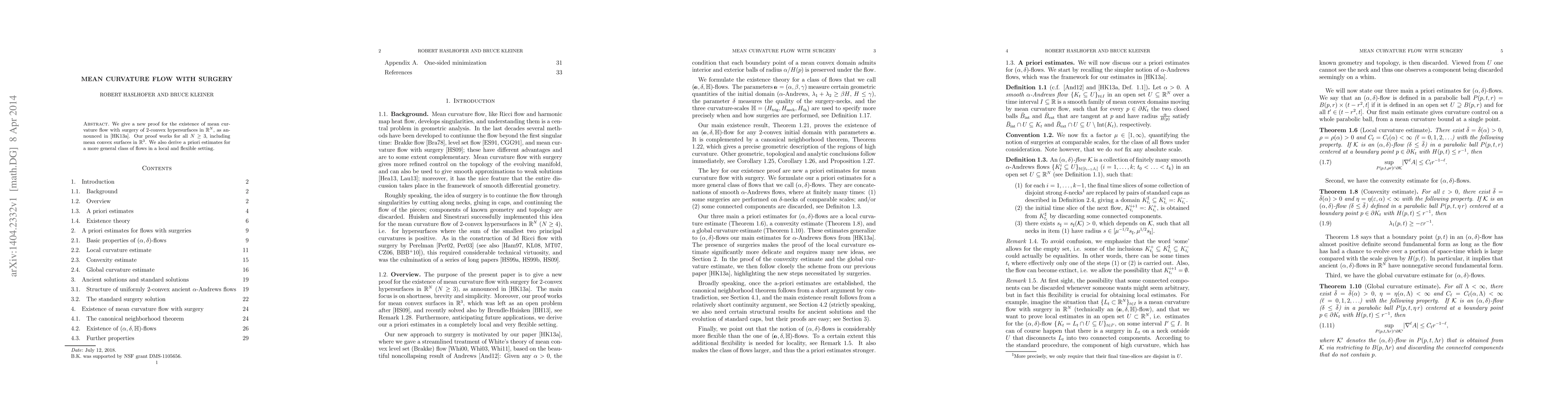 This paper presents a new proof for the existence of mean curvature flow with surgery for 2-convex hypersurfaces in $R^N$ for $N \geq 3$, including mean convex surfaces in $R^3$. It also provides a priori estimates for a broader class of flows in a flexible setting.