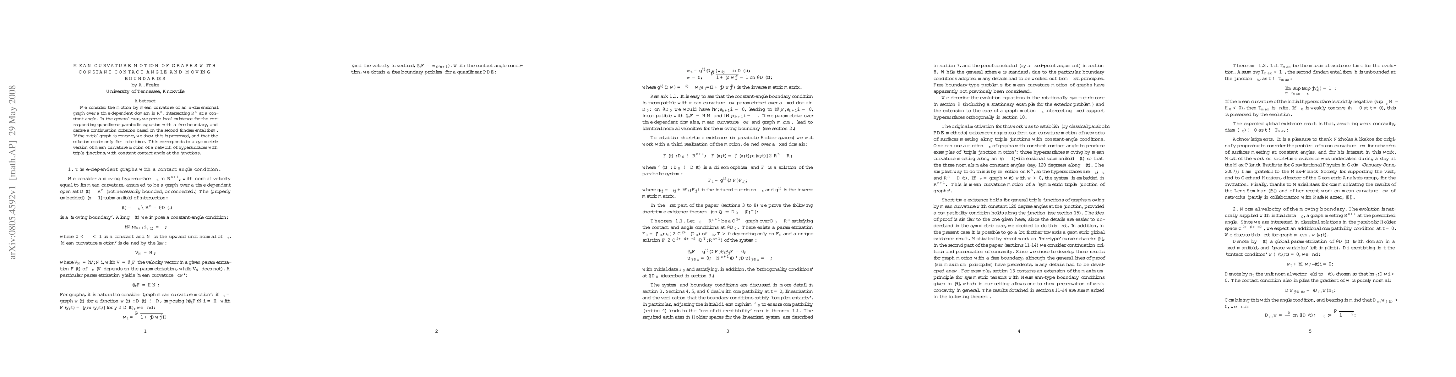 Researchers studied the movement of graphs with a constant contact angle and moving boundaries, proving local existence for a related parabolic equation and deriving a continuation criterion based on the second fundamental form.