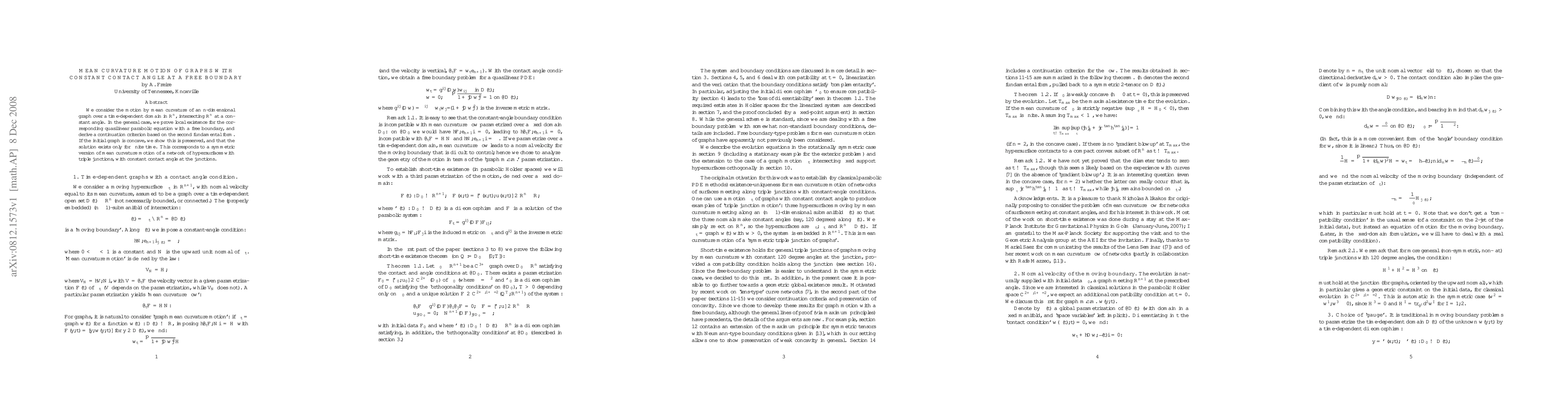 Researchers prove local existence for a specific type of motion of graphs with constant contact angle at a free boundary, preserving concavity in the initial graph for finite time.