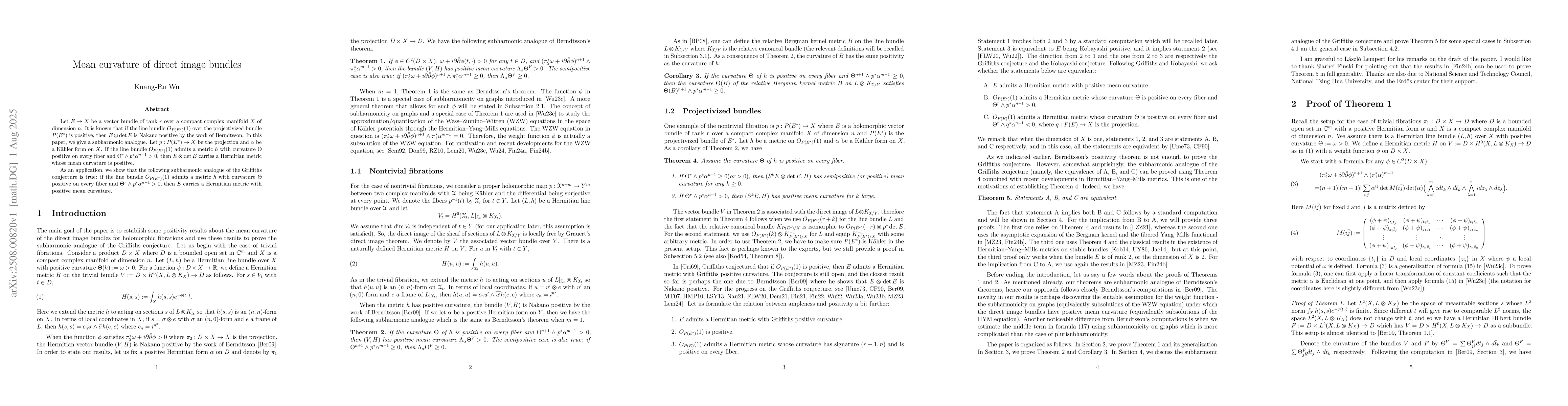 Let $E\to X$ be a vector bundle of rank $r$ over a compact complex manifold $X$ of dimension $n$. It is known that if the line bundle $O_{P(E^*)}(1)$ over the projectivized bundle $P(E^*)$ is positive, then $E\otimes \det E$ is Nakano positive by the work of Berndtsson. In this paper, we give a subharmonic analogue. Let $p:P(E^*)\to X$ be the projection and $\alpha$ be a K\"ahler form on $X$. If the line bundle $O_{P(E^*)}(1)$ admits a metric $h$ with curvature $\Theta$ positive on every fiber and $\Theta^r\wedge p^*\alpha^{n-1}> 0$, then $E\otimes \det E$ carries a Hermitian metric whose mean curvature is positive. As an application, we show that the following subharmonic analogue of the Griffiths conjecture is true: if the line bundle $O_{P(E^*)}(1)$ admits a metric $h$ with curvature $\Theta$ positive on every fiber and $\Theta^r\wedge p^*\alpha^{n-1}> 0$, then $E$ carries a Hermitian metric with positive mean curvature.